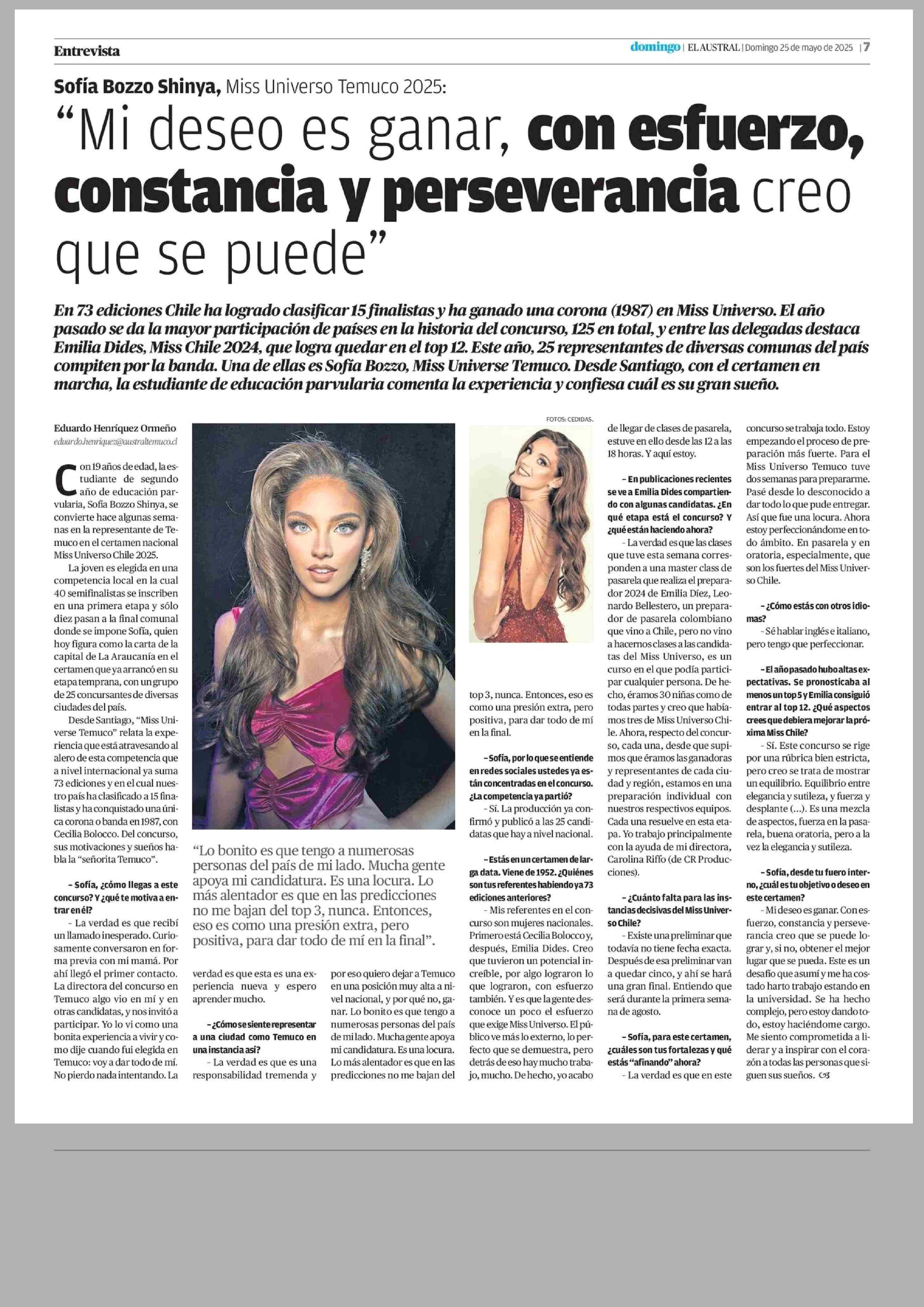 “Mi deseo es ganar, con esfuerzo, constancia y perseverancia creo que se puede” 25-05-2025 El Austral de la Araucanía |