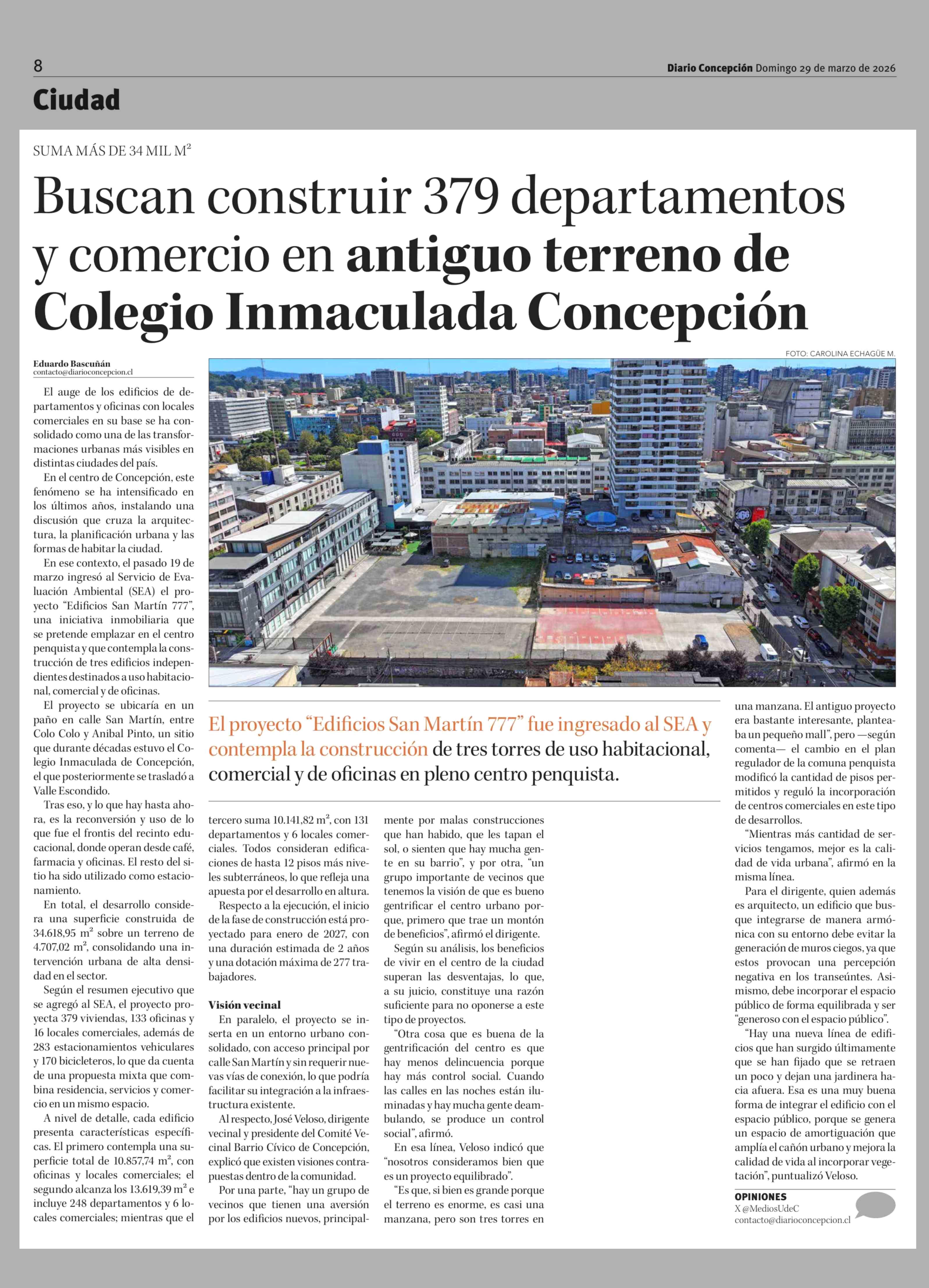 Título: Buscan construir 379 departamentos y comercio en antiguo terreno de Colegio Inmaculada Concepción