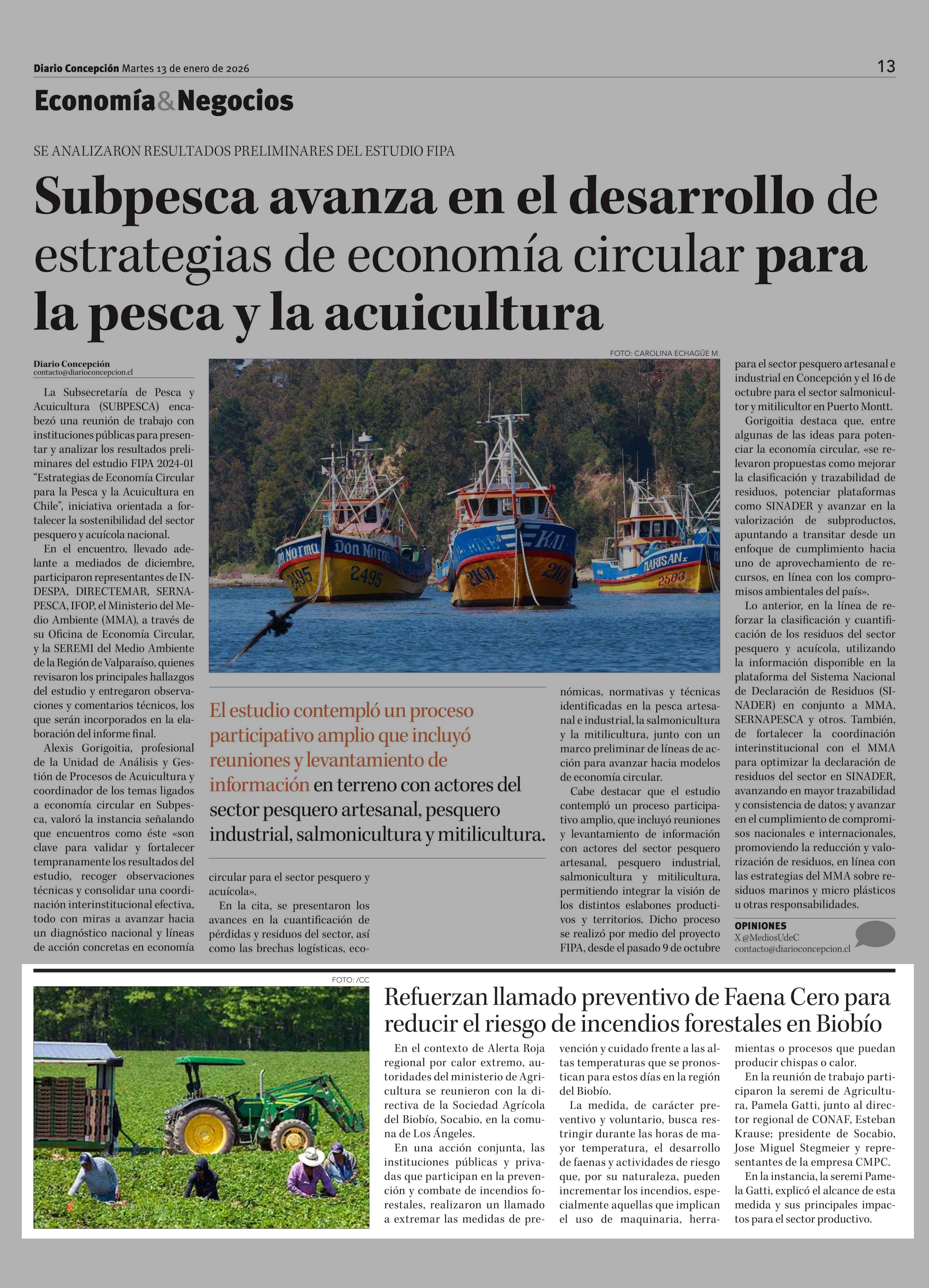 Refuerzan llamado preventivo de Faena Cero para reducir el riesgo de incendios forestales en Biobío 13-01-2026 Diario Concepción |