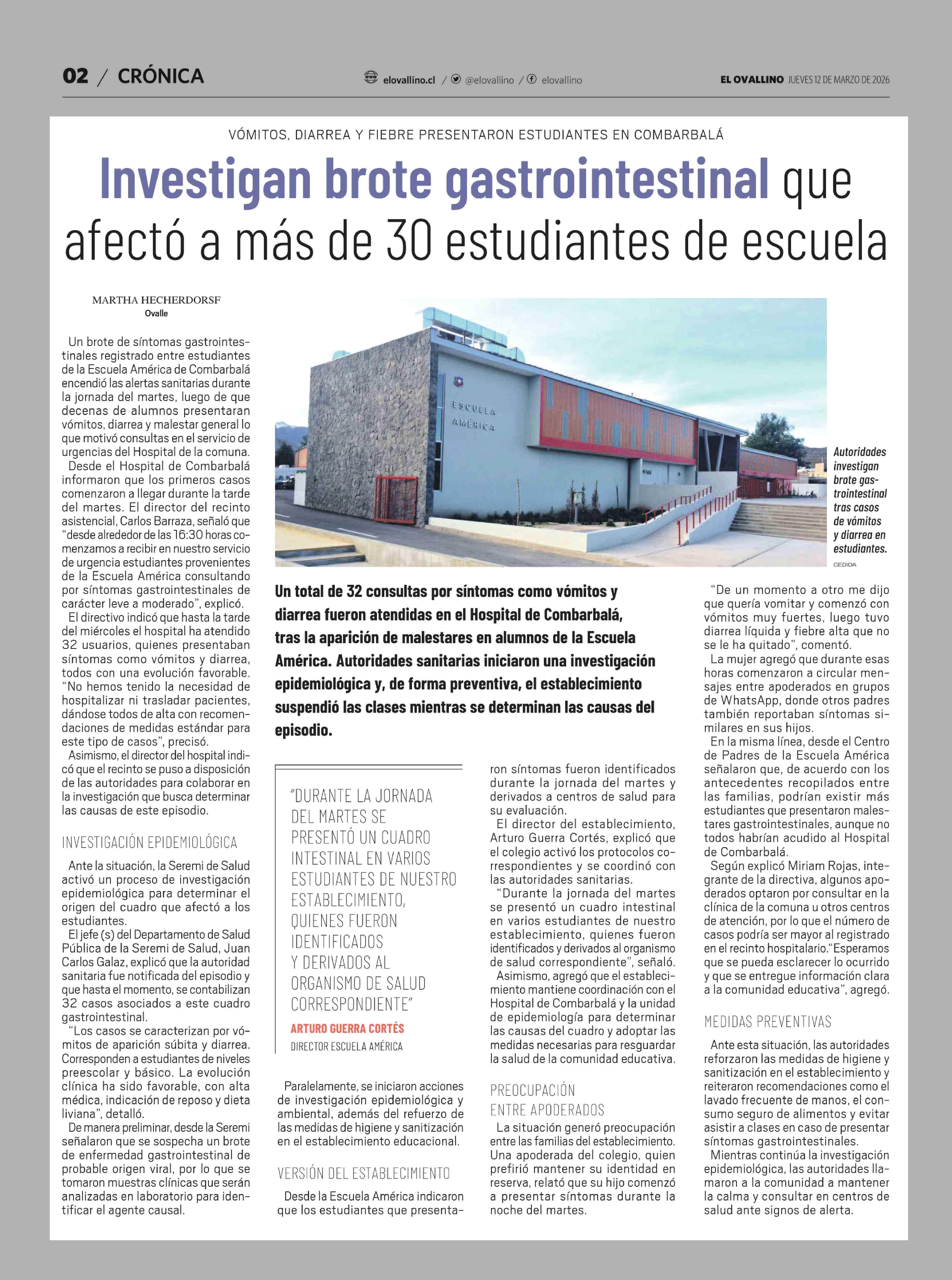 Título: Investigan brote gastrointestinal que afectó a más de 30 estudiantes de escuela