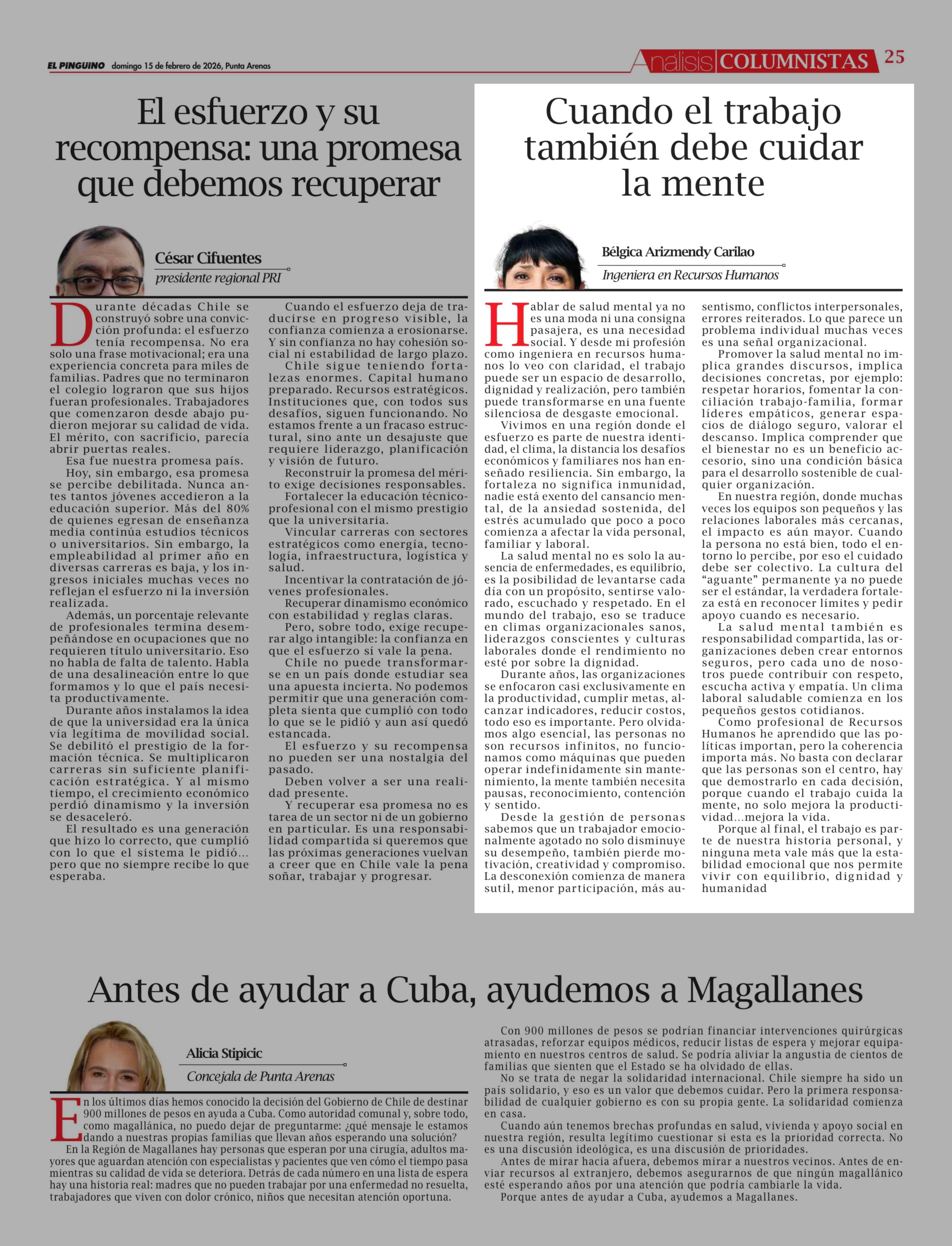 Fecha: 15-02-2026 Sector: Columnas de Opinión Región: Región de Magallanes y de la Antártica Chilena