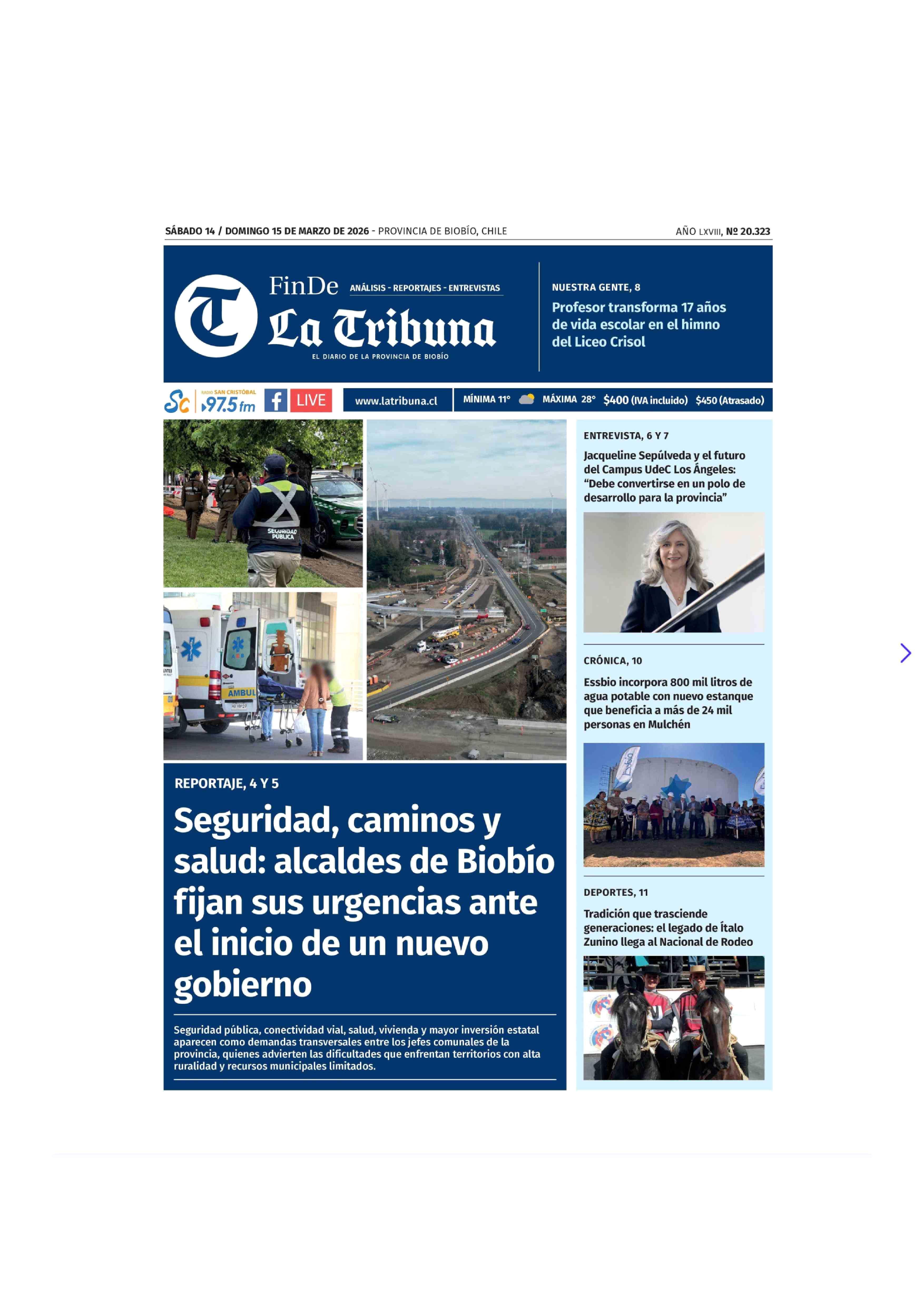 | Fecha: | 14-03-2026 | Sector: | Portada | Región: | Región del Bío-Bío |