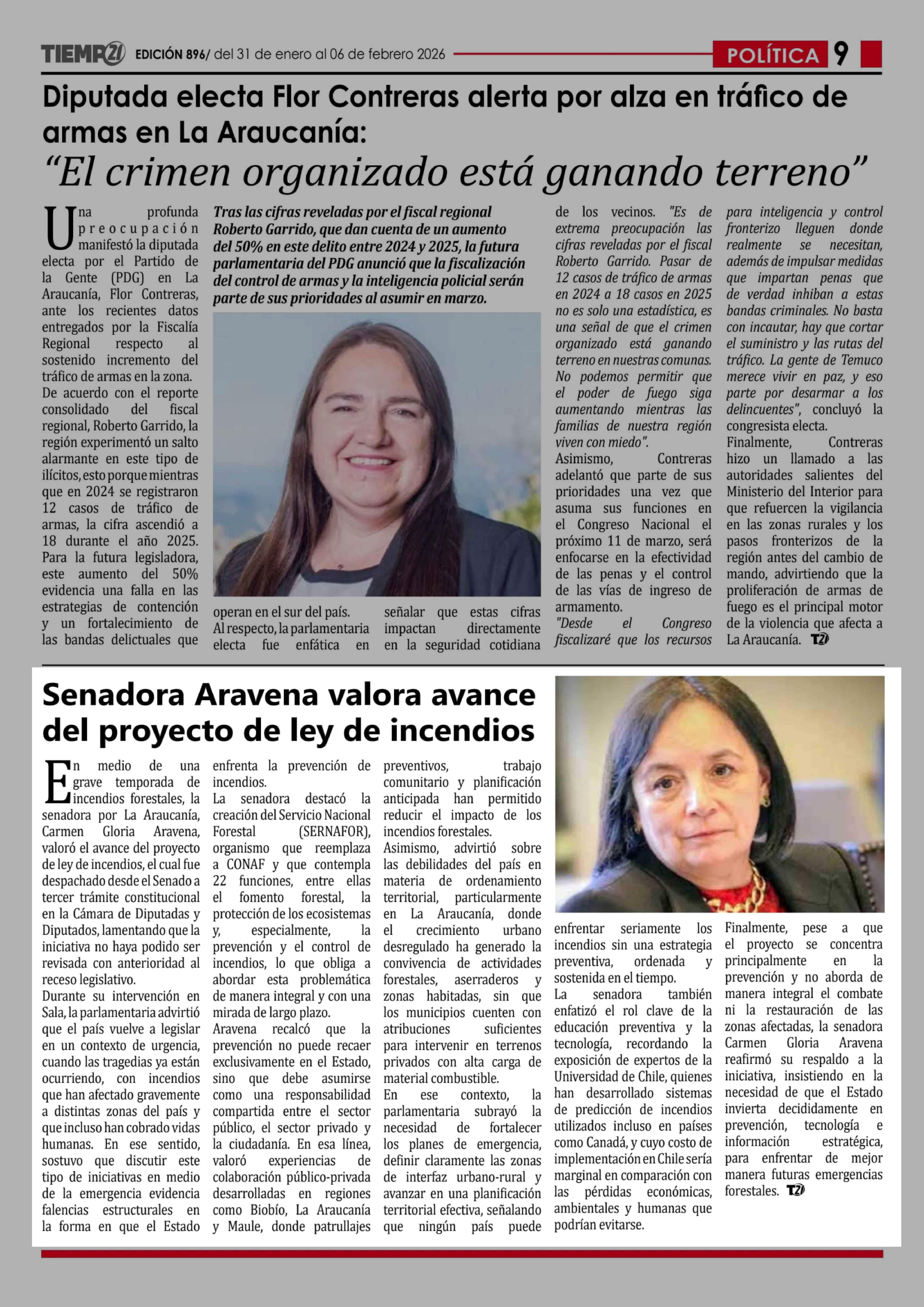 Senadora Aravena valora avance del proyecto de ley de incendios 31-01-2026 Tiempo 21 |