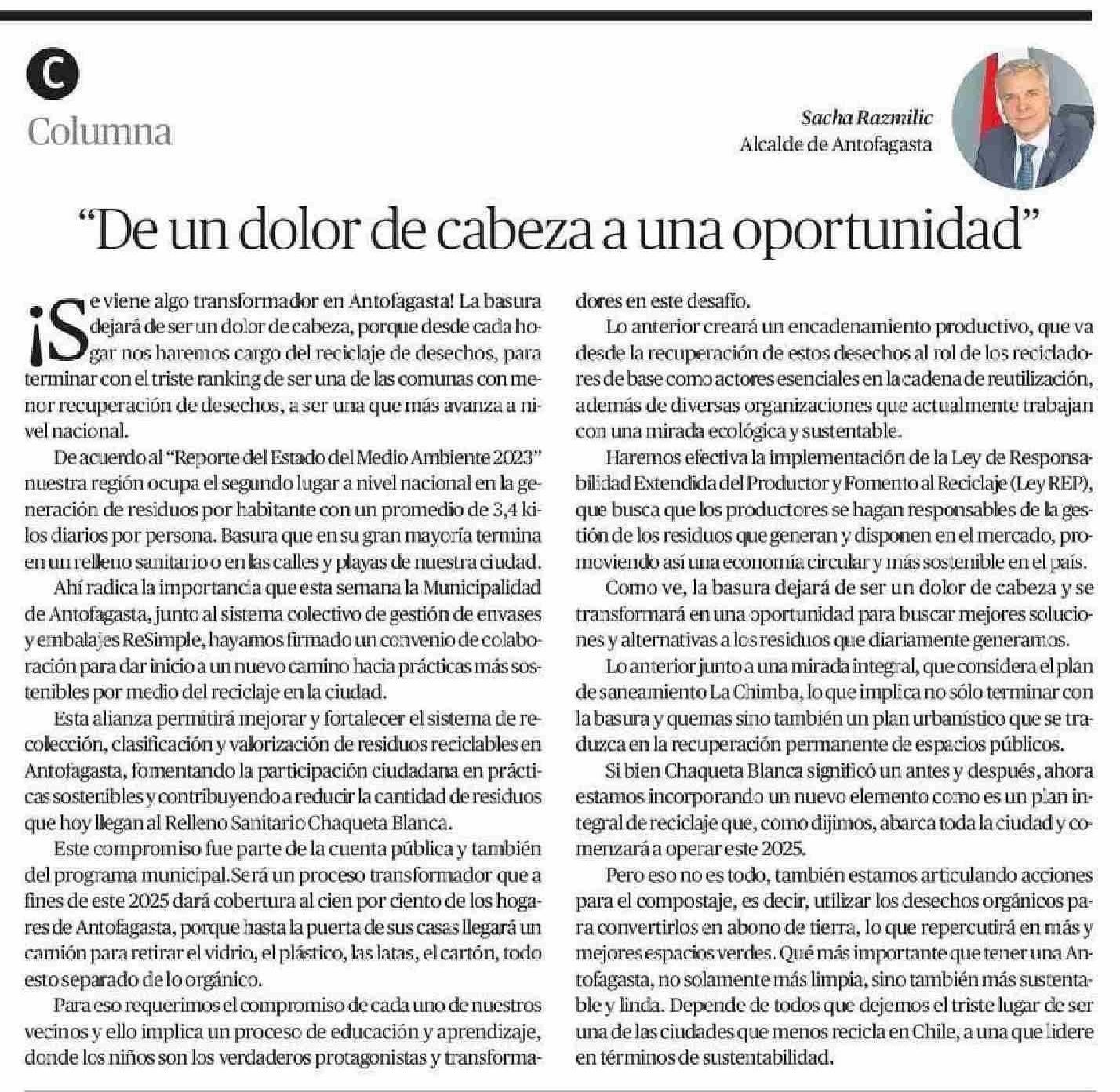 Columnas de Opinión: “De un dolor de cabeza a una oportunidad” 17-05-2025 El Mercurio de Antofagasta |