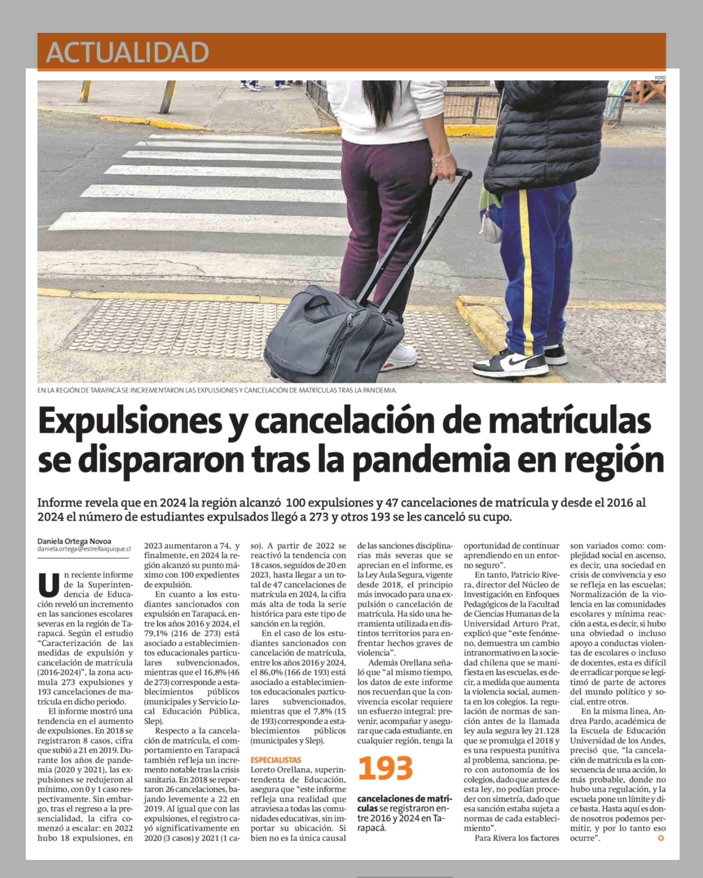 Título: Expulsiones y cancelación de matrículas se dispararon tras la pandemia en región