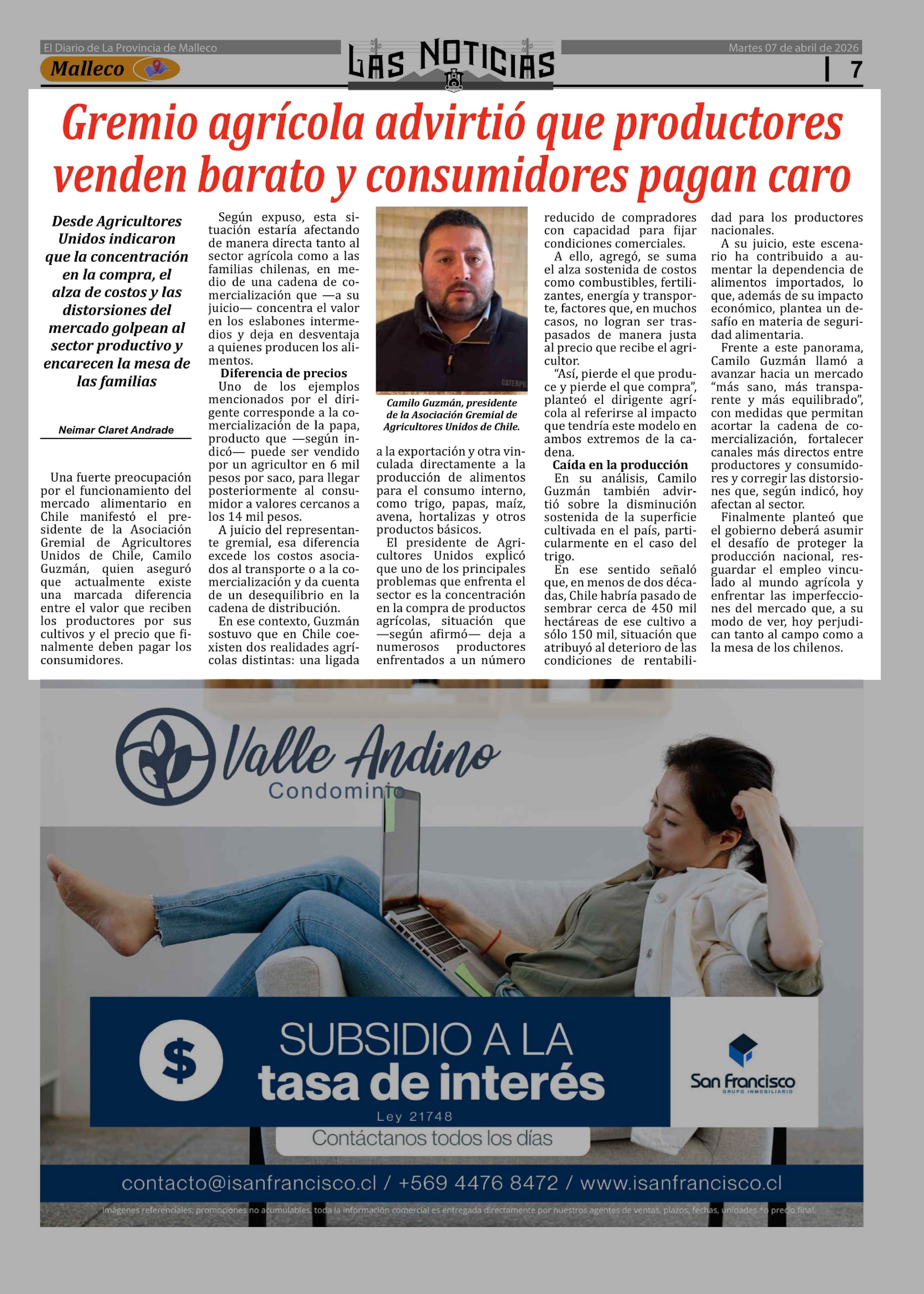 Gremio agrícola advirtió que productores venden barato y consumidores pagan caro 07-04-2026 Las Noticias |