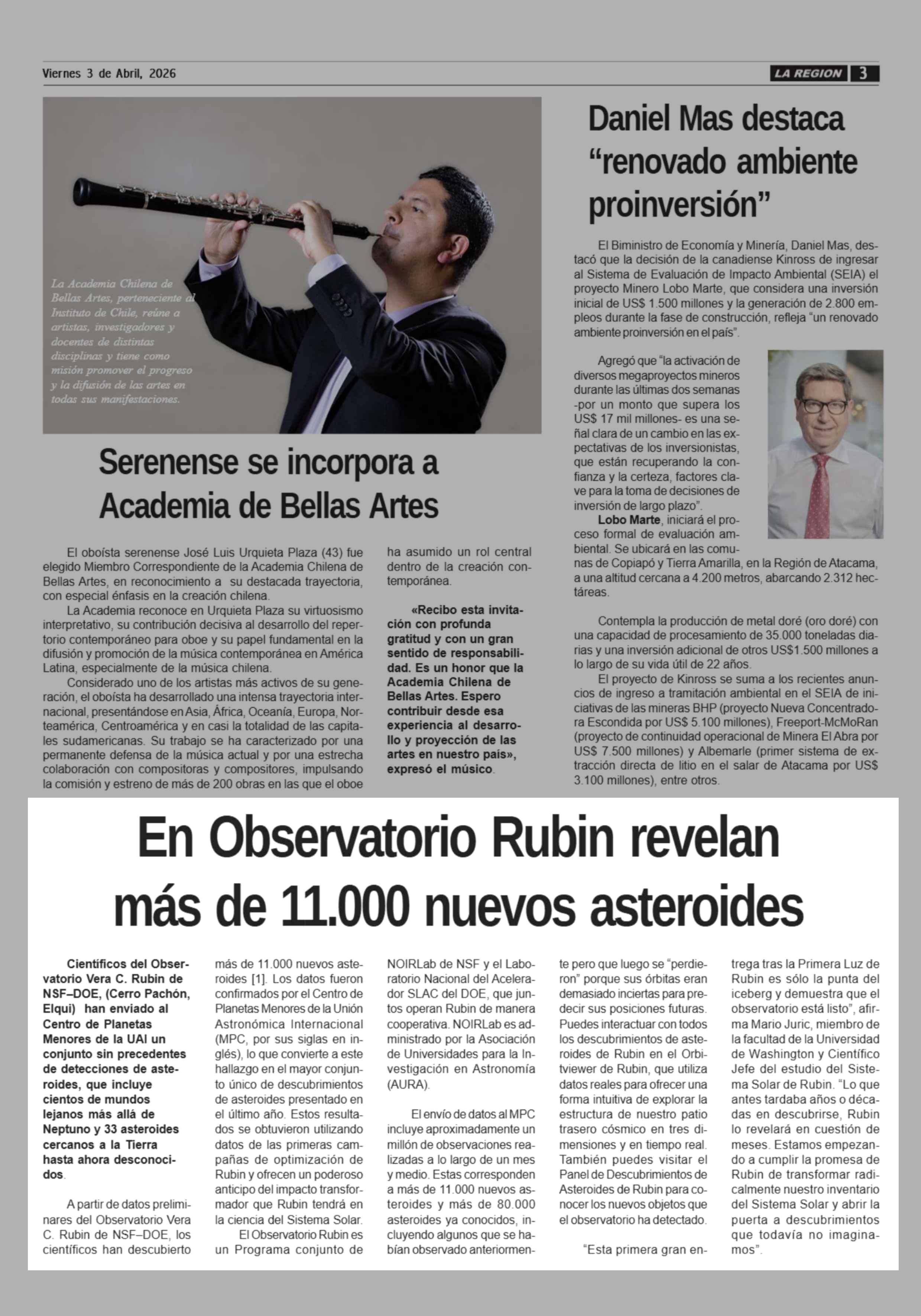 Fuente: Diario la Región (Diario la Región) Página(s): 3