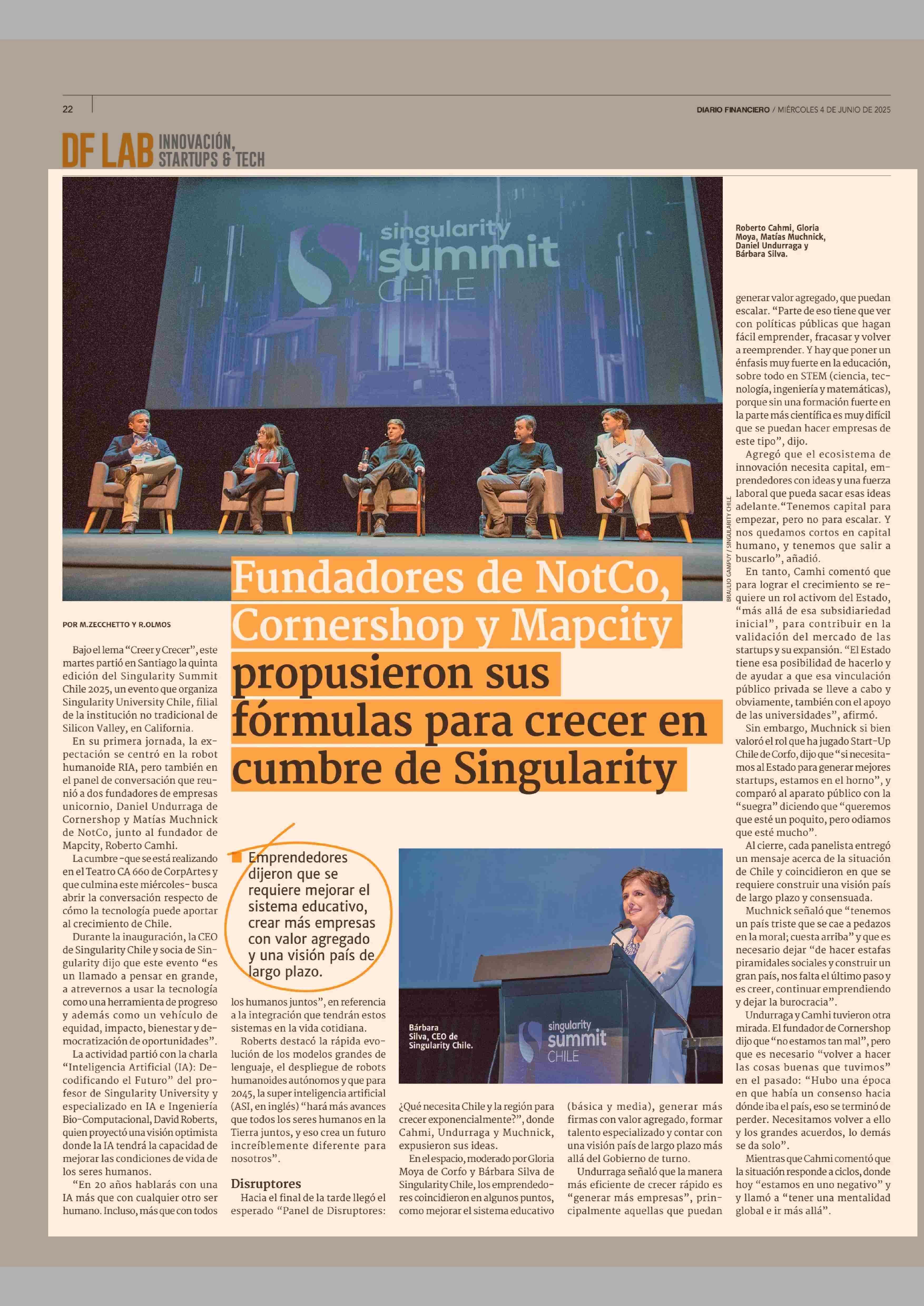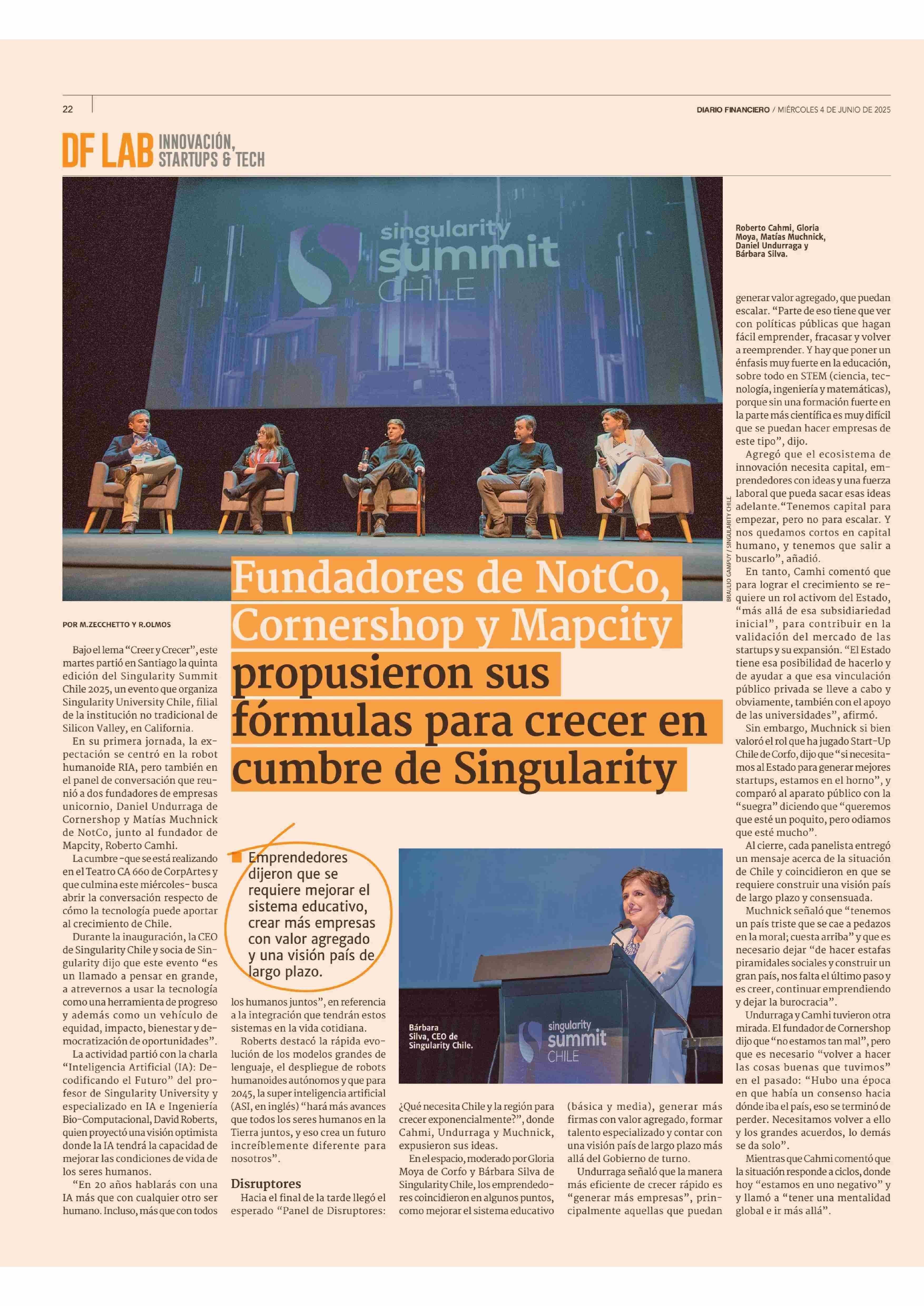 Título: Fundadores de NotCo, Cornershop y Mapcity propusieron sus fórmulas para crecer en cumbre de Singularity