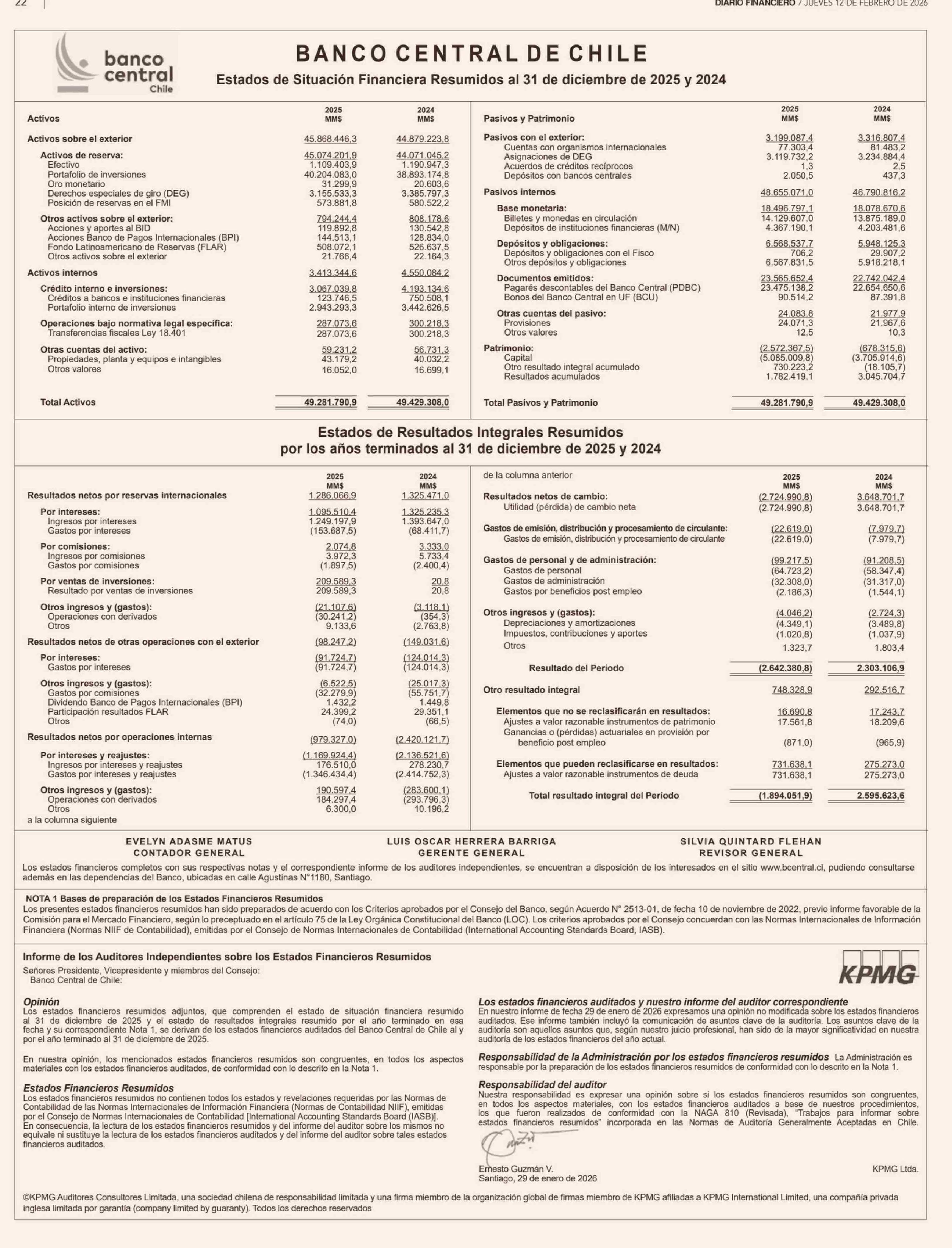 BANCO CENTRAL DE CHILE 12-02-2026 Diario Financiero |