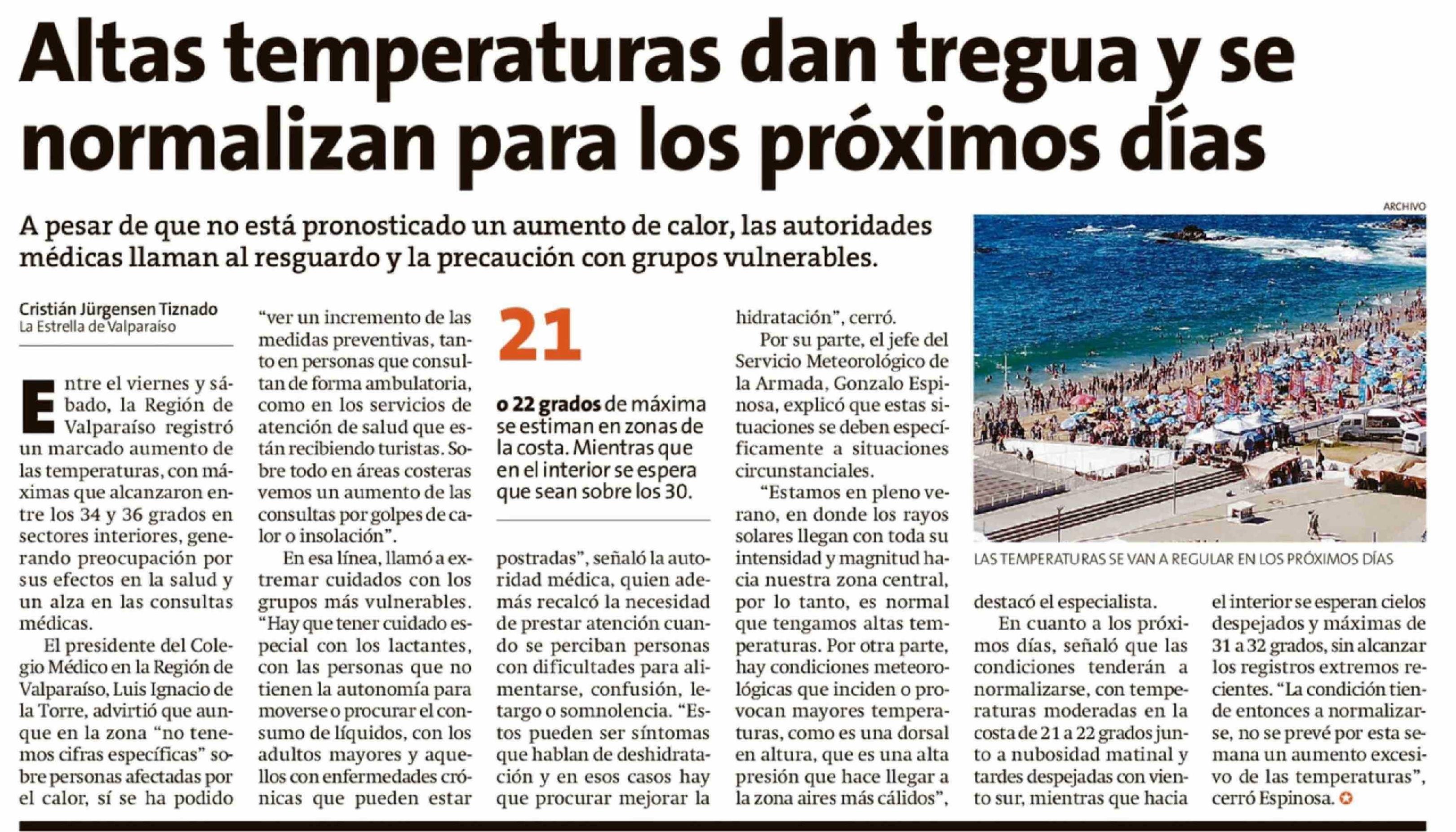 Altas temperaturas dan tregua y se normalizan para los próximos días 09-02-2026 La Estrella de Valparaíso |