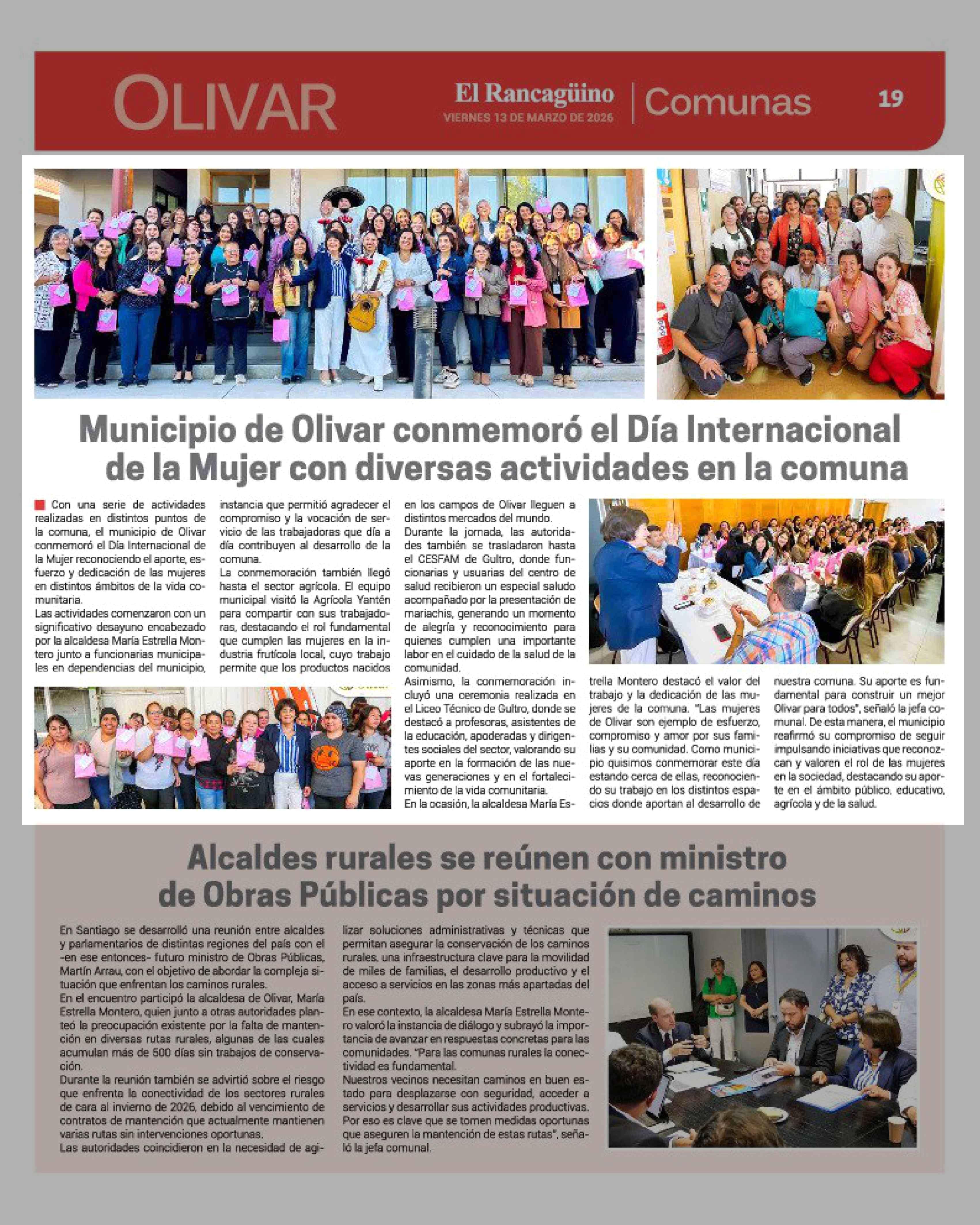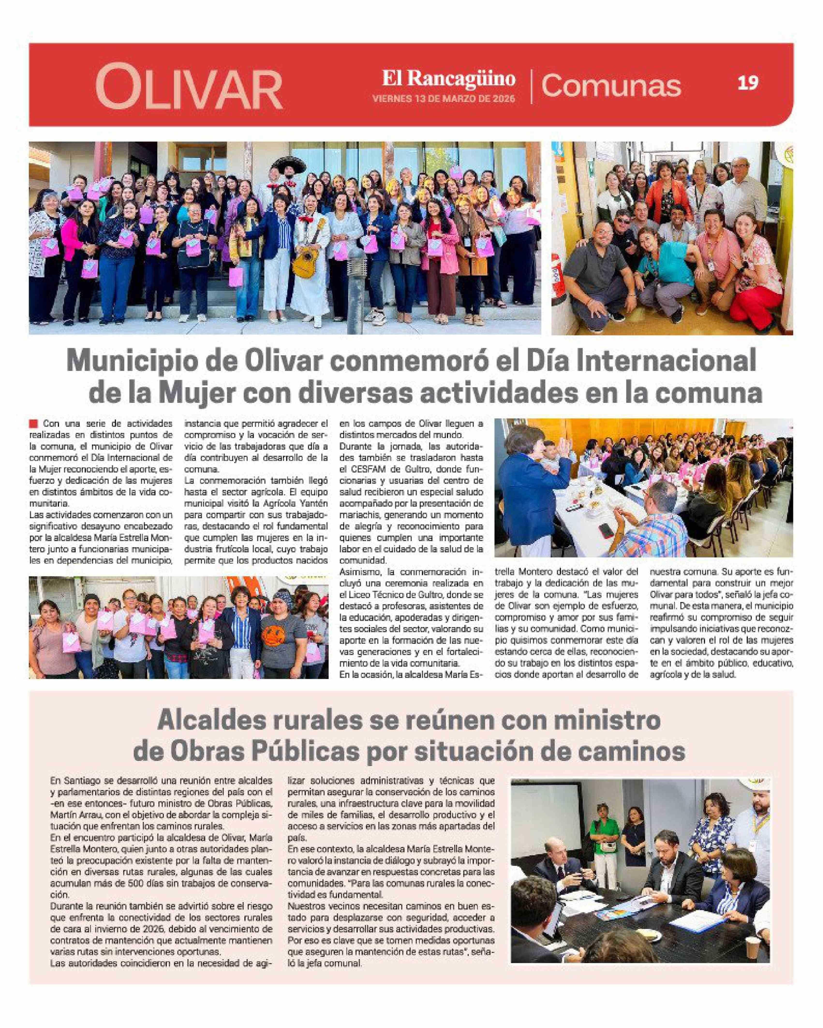 Municipio de Olivar conmemoró el Día Internacional de la Mujer con diversas actividades en la comuna 13-03-2026 El Rancagüino |