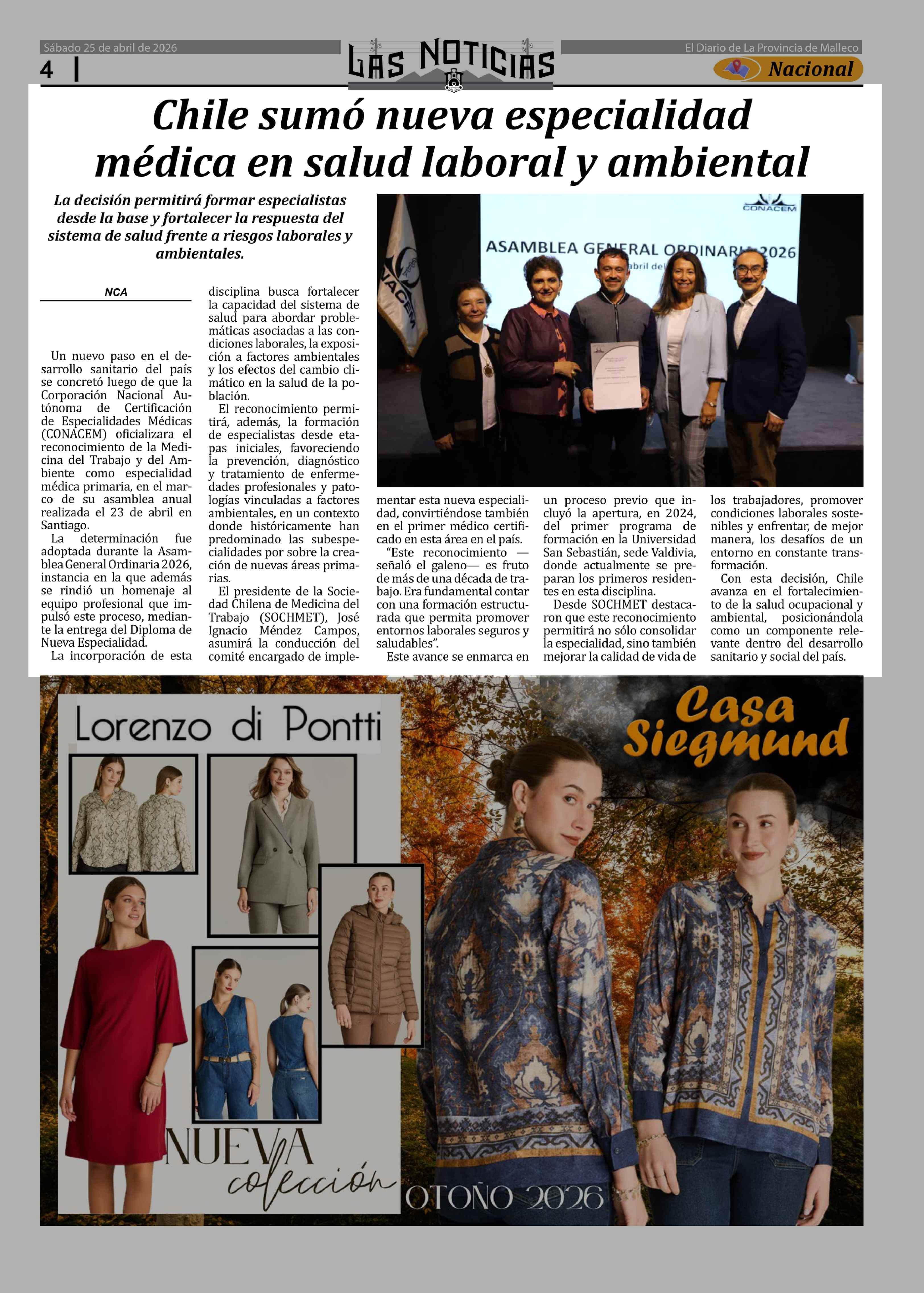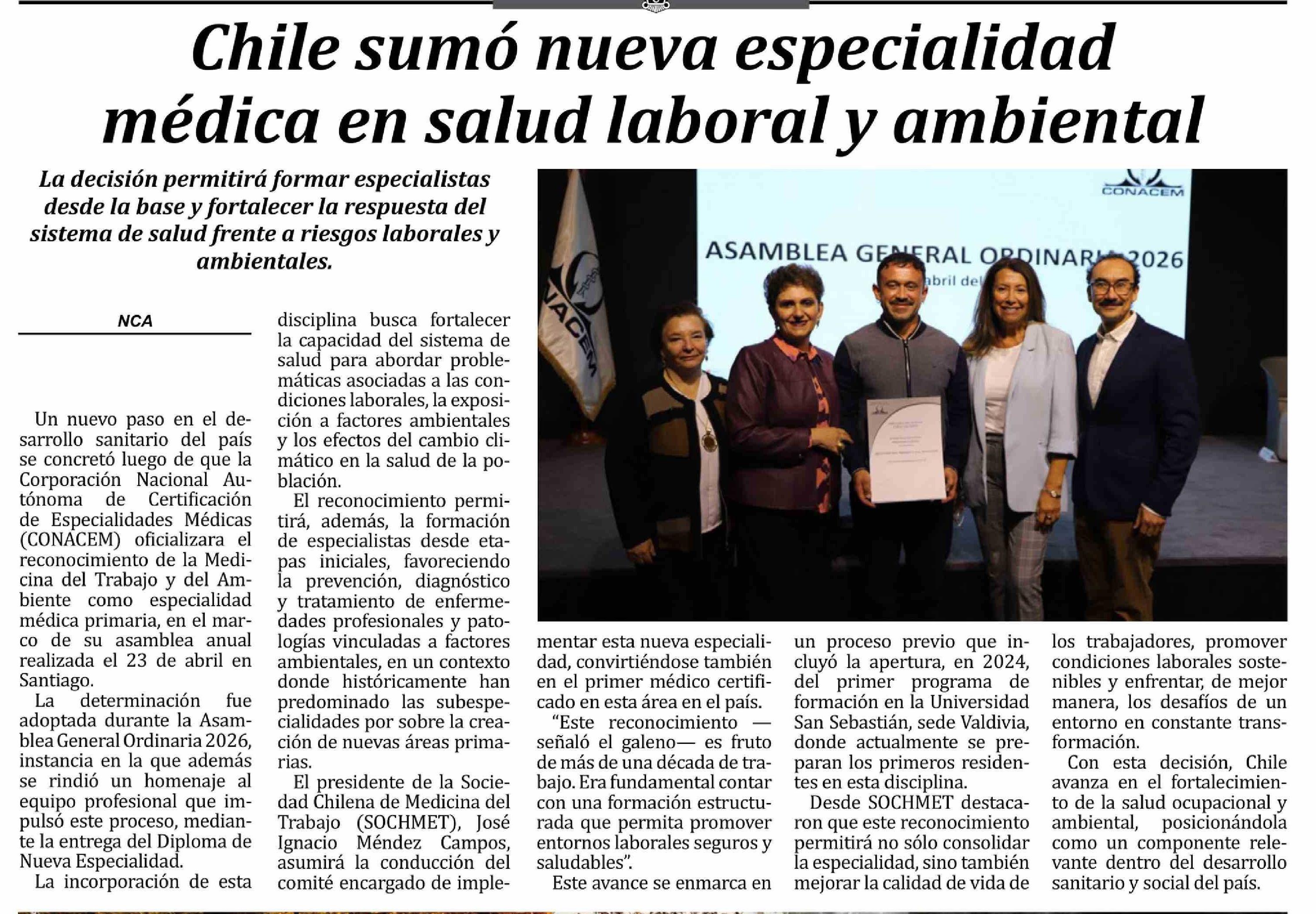 Chile sumó nueva especialidad médica en salud laboral y ambiental 25-04-2026 Las Noticias |