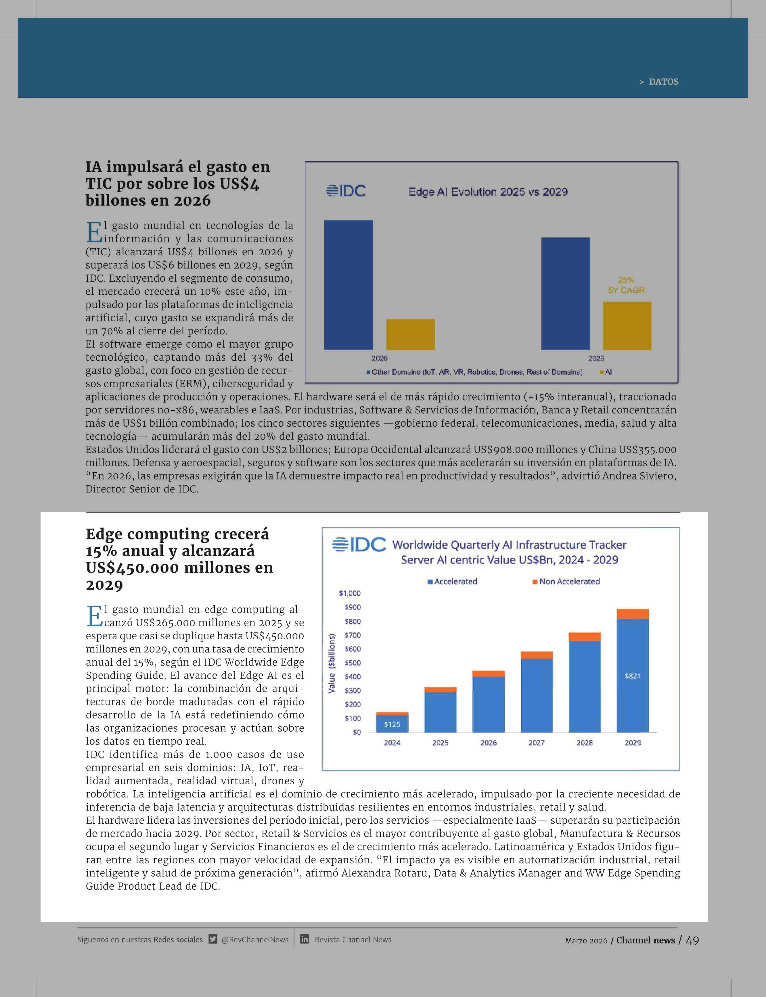 Edge computing crecerá 15% anual y alcanzará US$450.000 millones en 2029 30-03-2026 Revista Channel News |