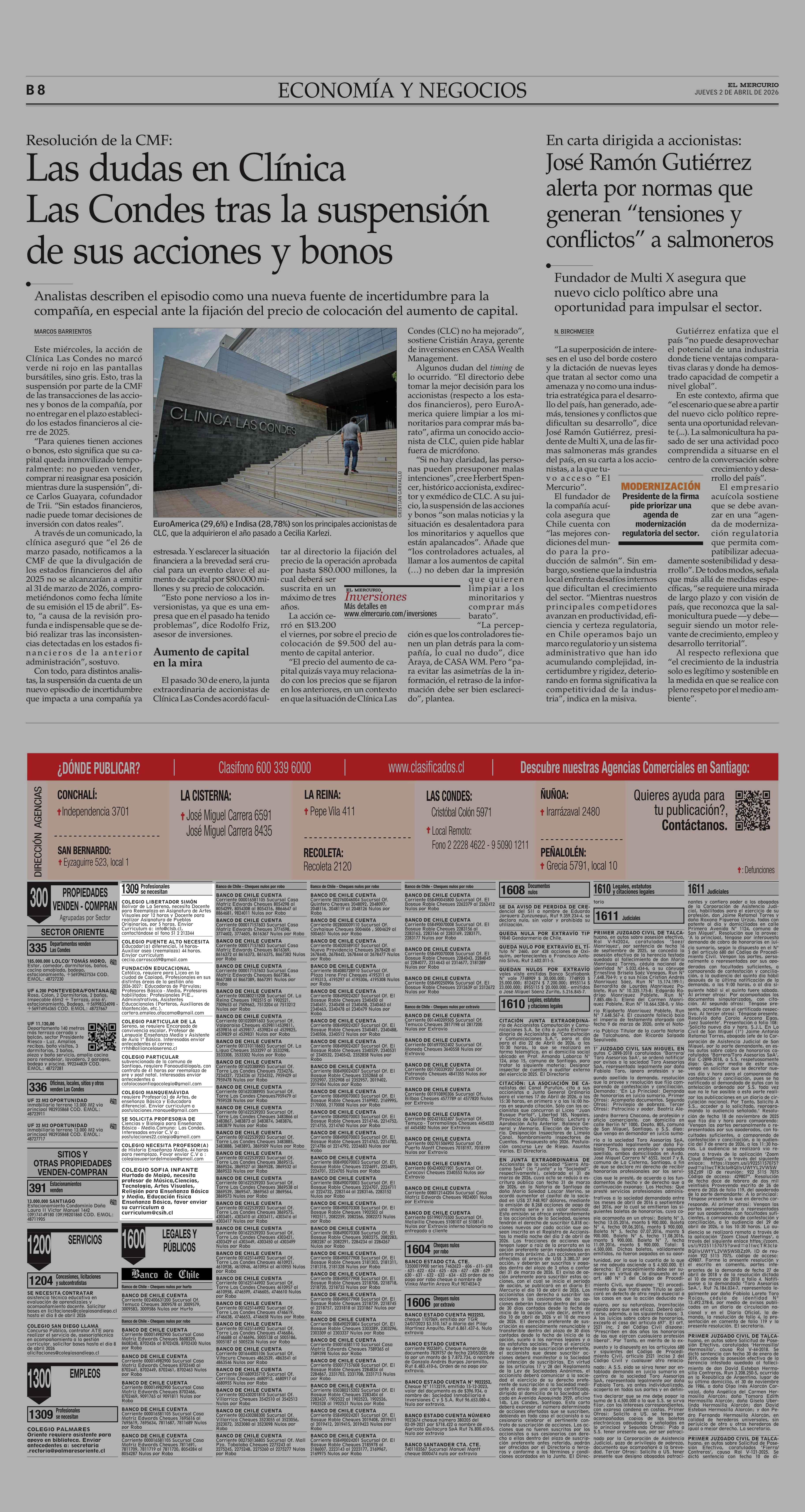 AVISO LICITACIONES: Área Educación 02-04-2026 El Mercurio |