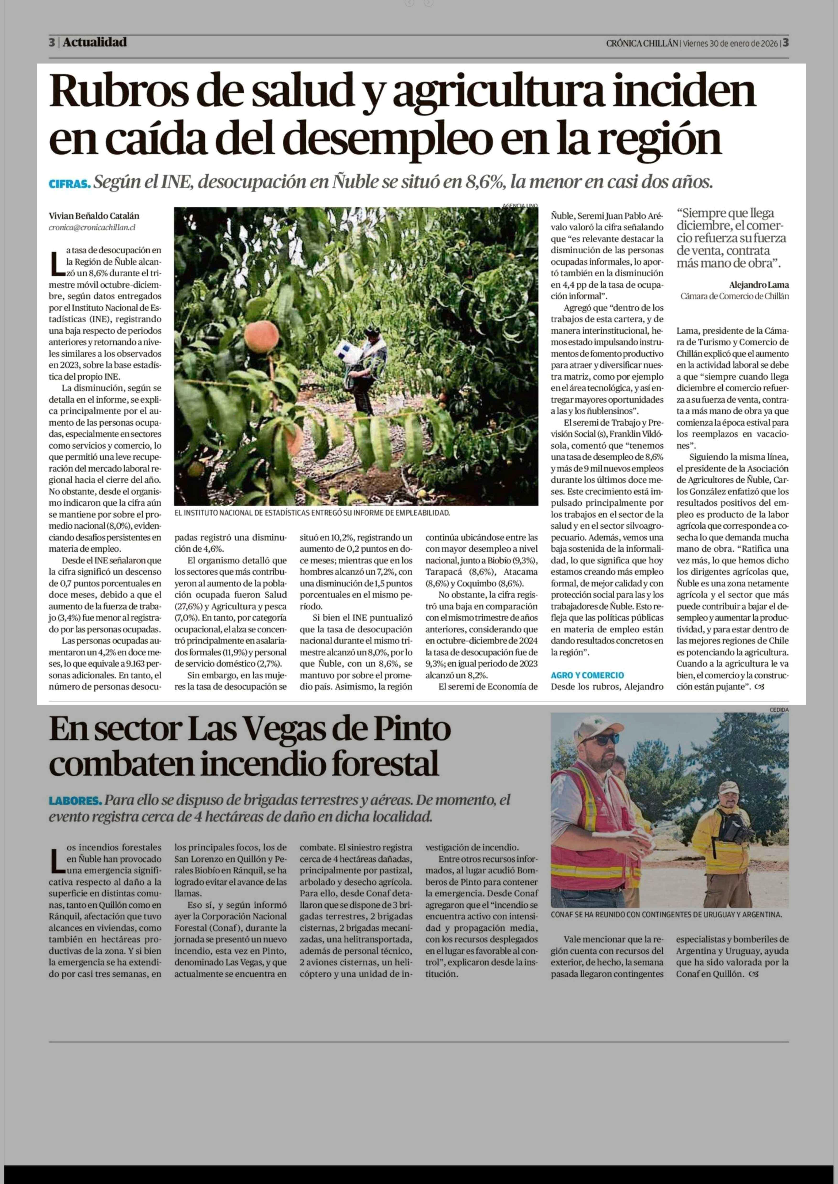 Fecha: 30-01-2026 Sector: Noticia general Región: Región del Ñuble