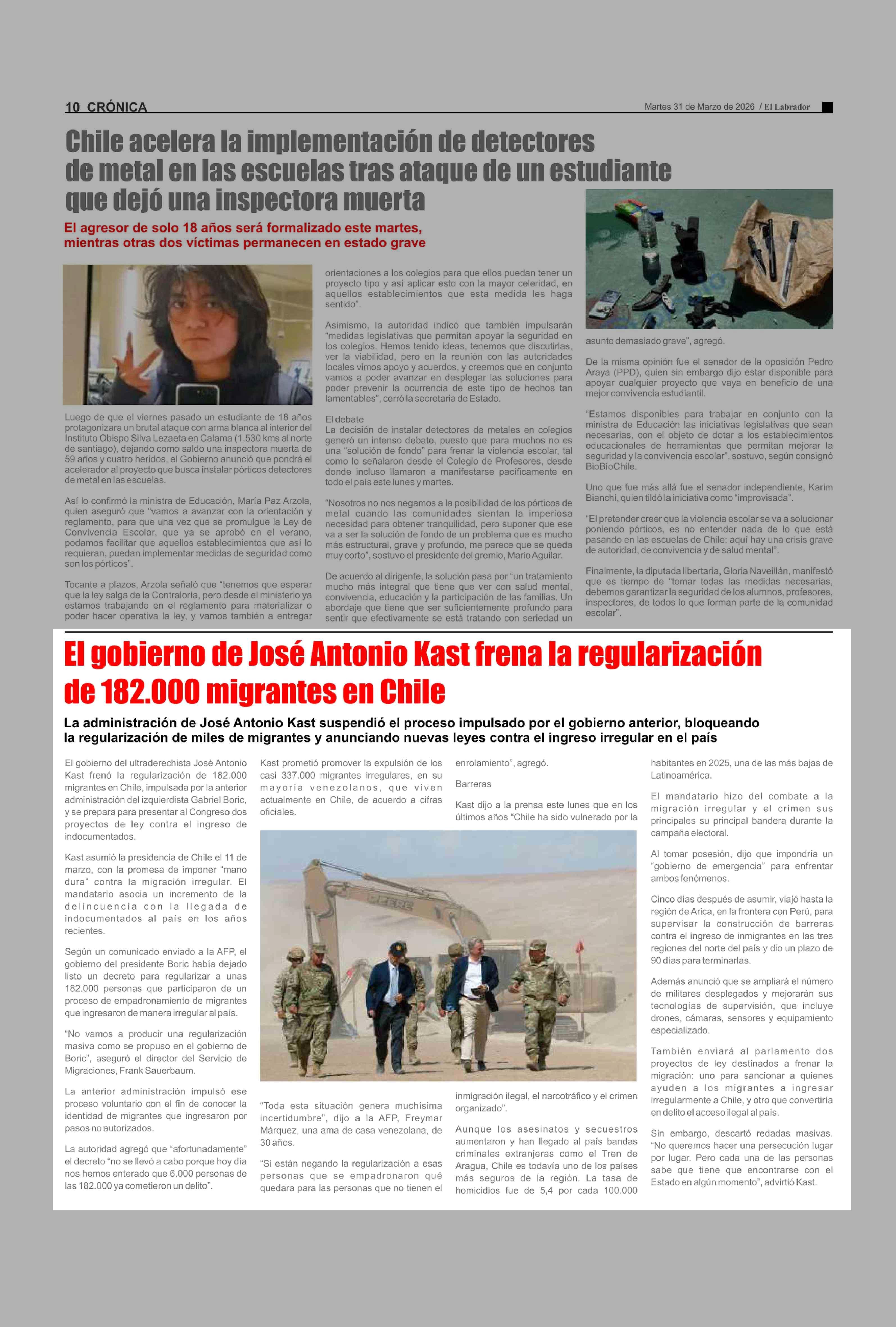 Fuente: El Labrador (El Labrador) Página(s): 10