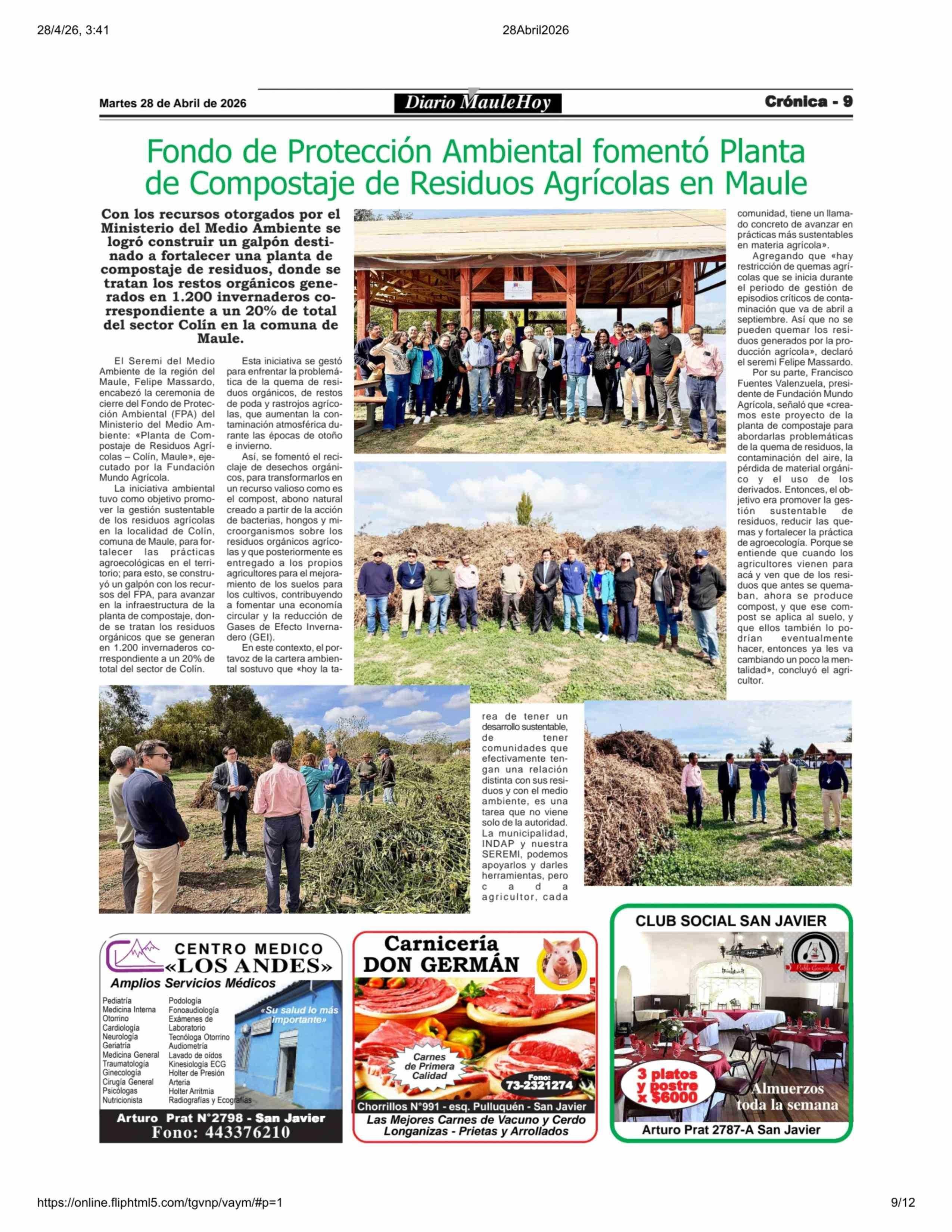 Fondo de Protección Ambiental fomento Planta de Compostaje de Residuos Agrícolas en Maule 28-04-2026 Maule Hoy |