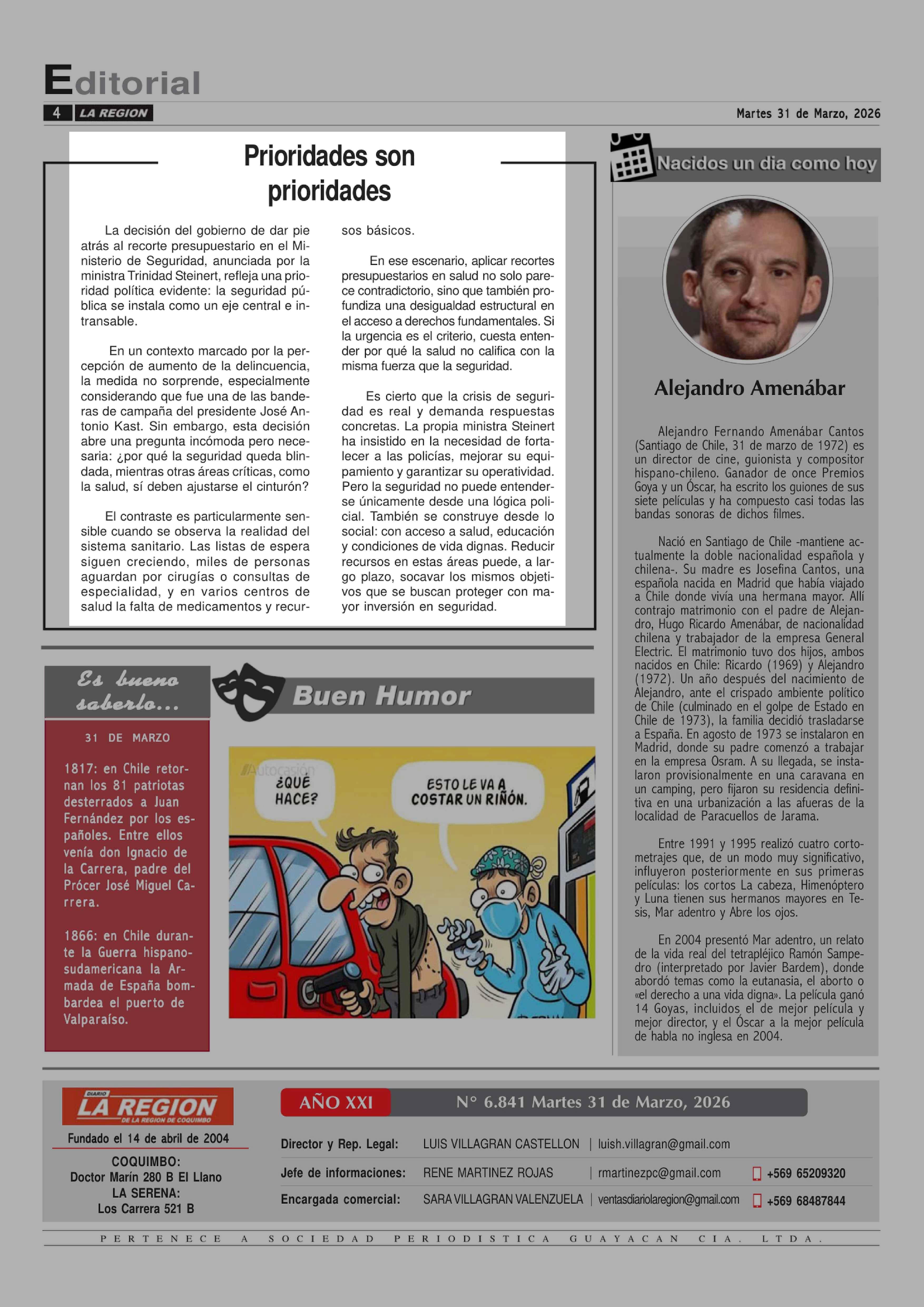 Fecha: 31-03-2026 Sector: Editorial Región: Región de Coquimbo
