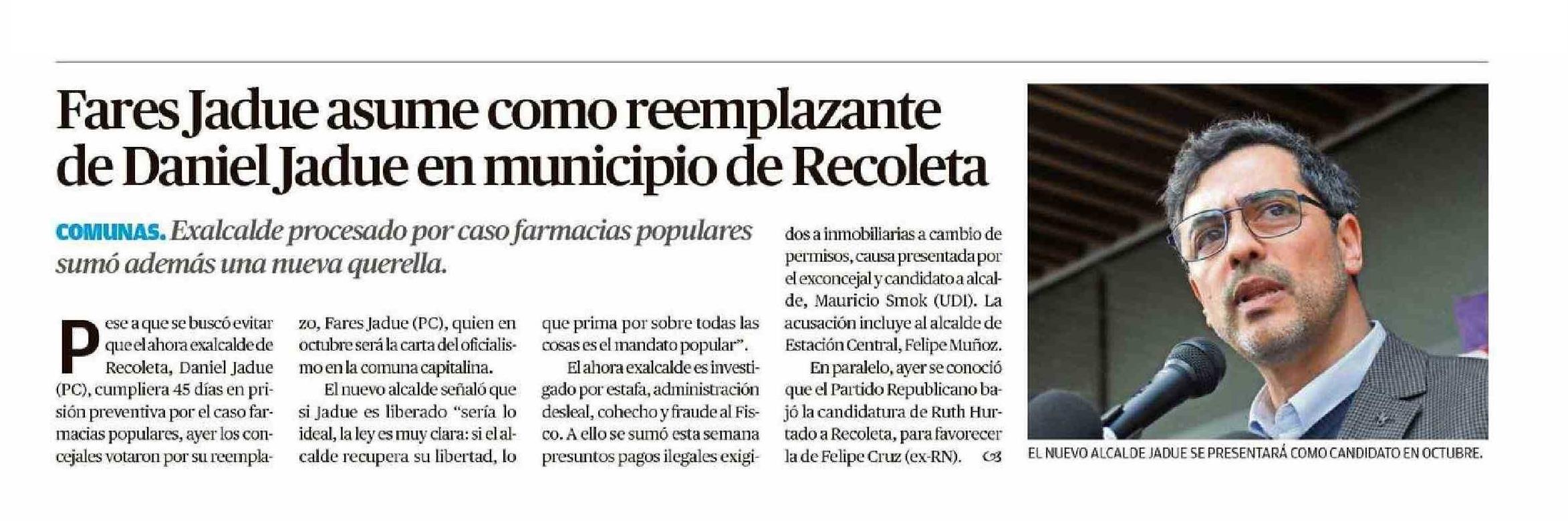Fares Jadue asume como reemplazante de Daniel Jadue en municipio de Recoleta 27-07-2024 El Mercurio de Valparaíso |