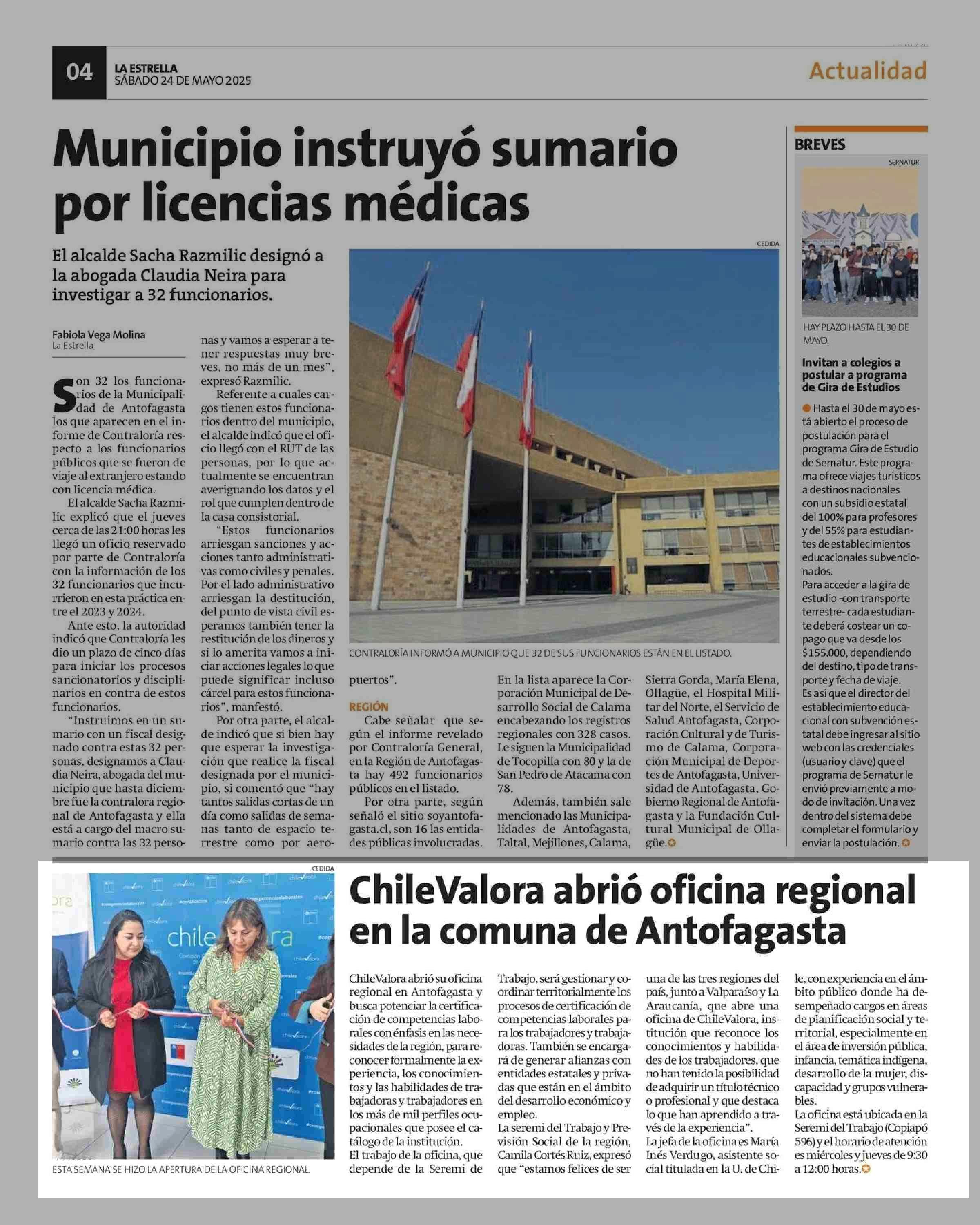 ChileValora abrió oficina regional en la comuna de Antofagasta 24-05-2025 La Estrella de Antofagasta |