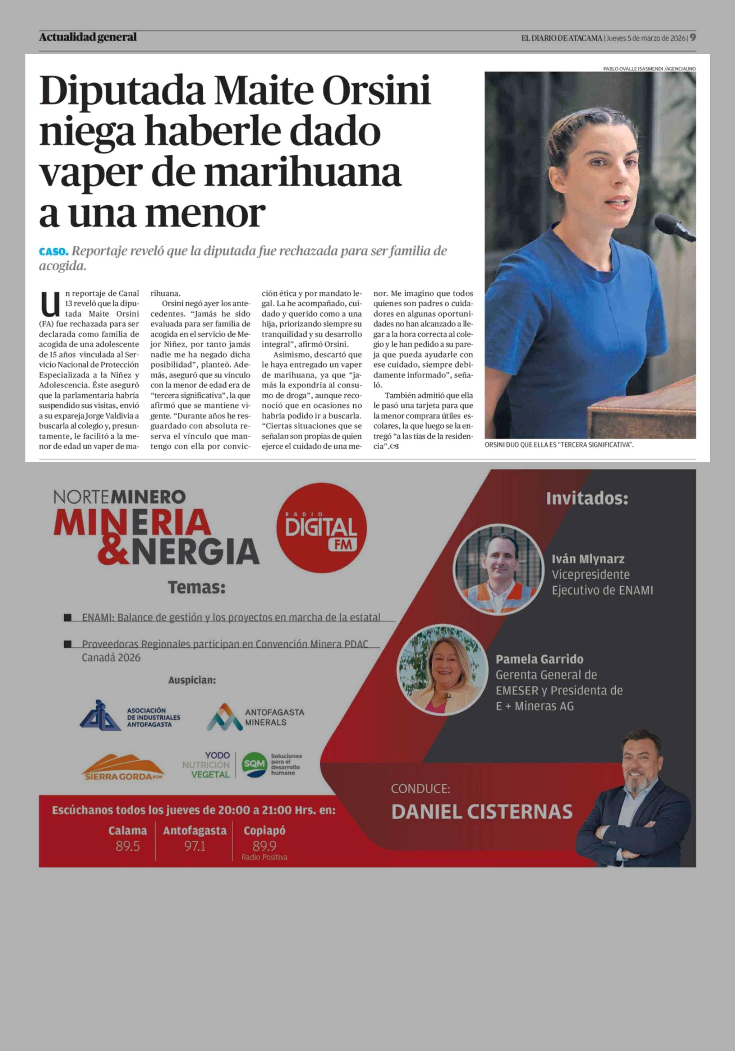 Fuente: El Diario de Atacama (El Diario de Atacama) Página(s): 9