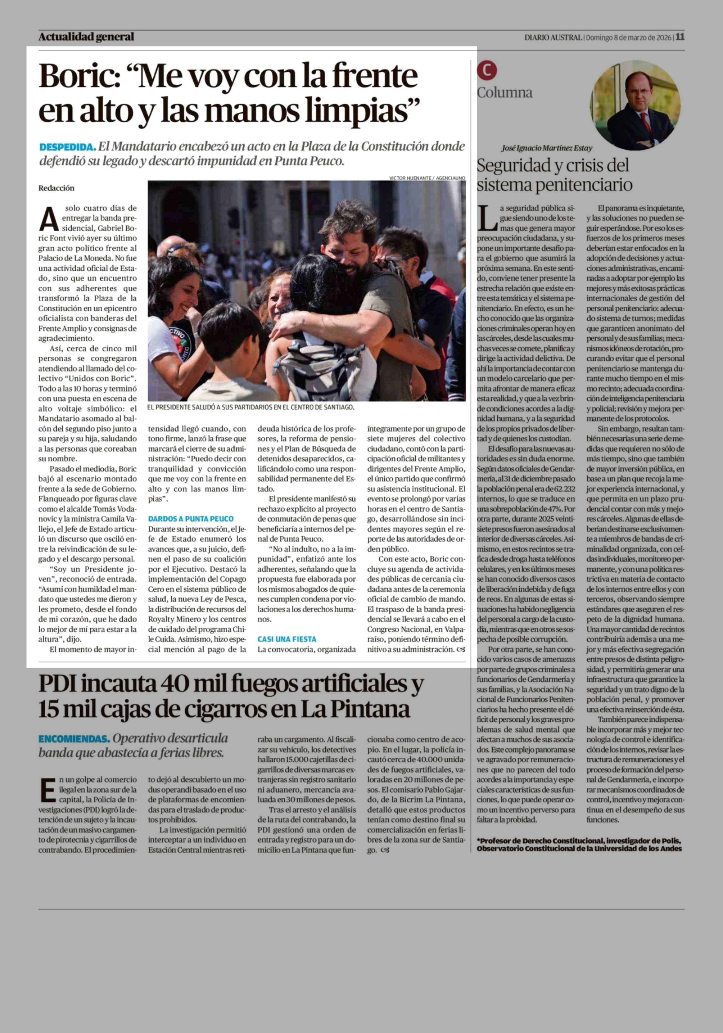 Boric: "Me voy con la frente en alto y las manos limpias" 08-03-2026 Diario Austral Región de Los Ríos |