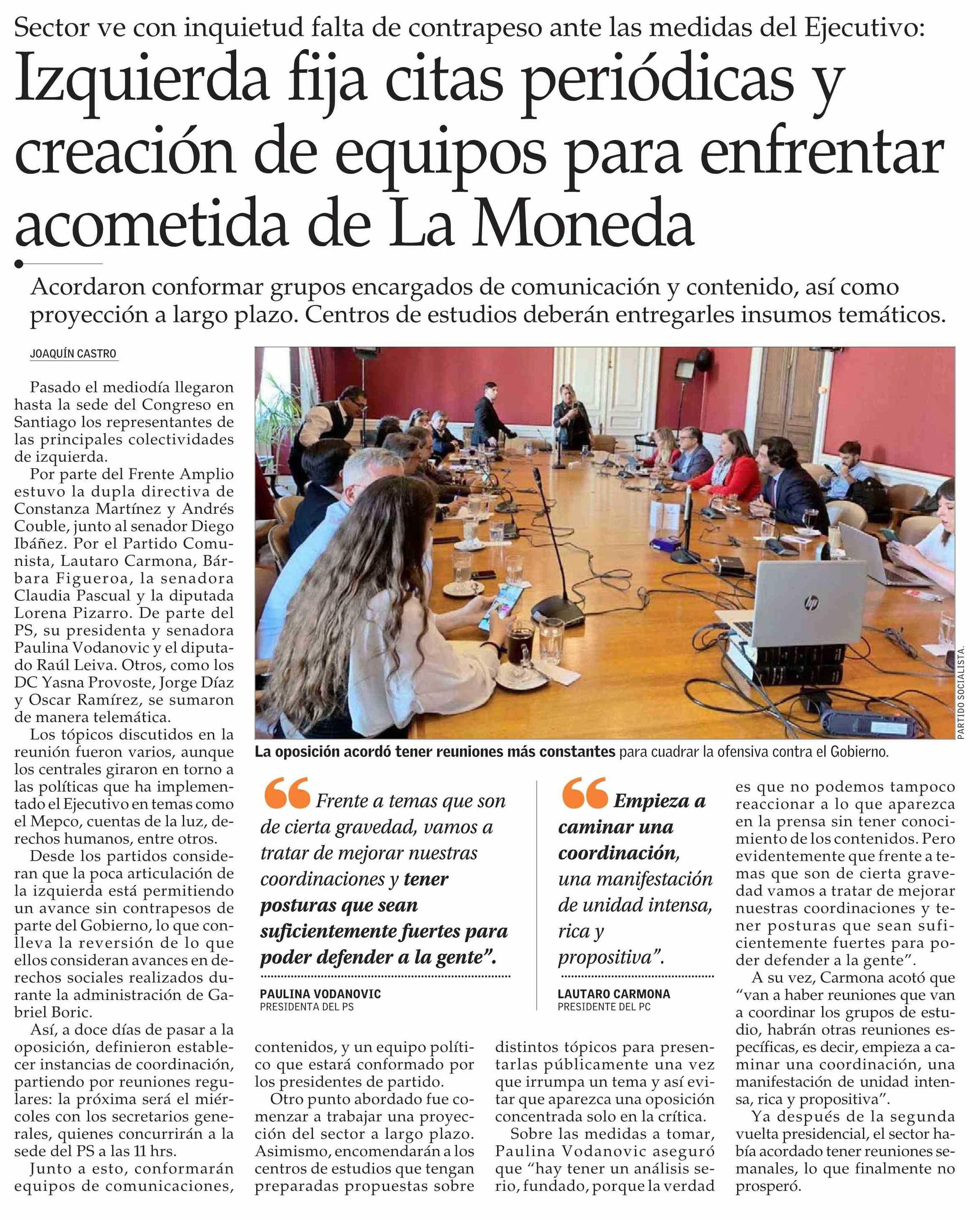 Título: Izquierda fija citas periódicas y creación de equipos para enfrentar acometida de La Moneda