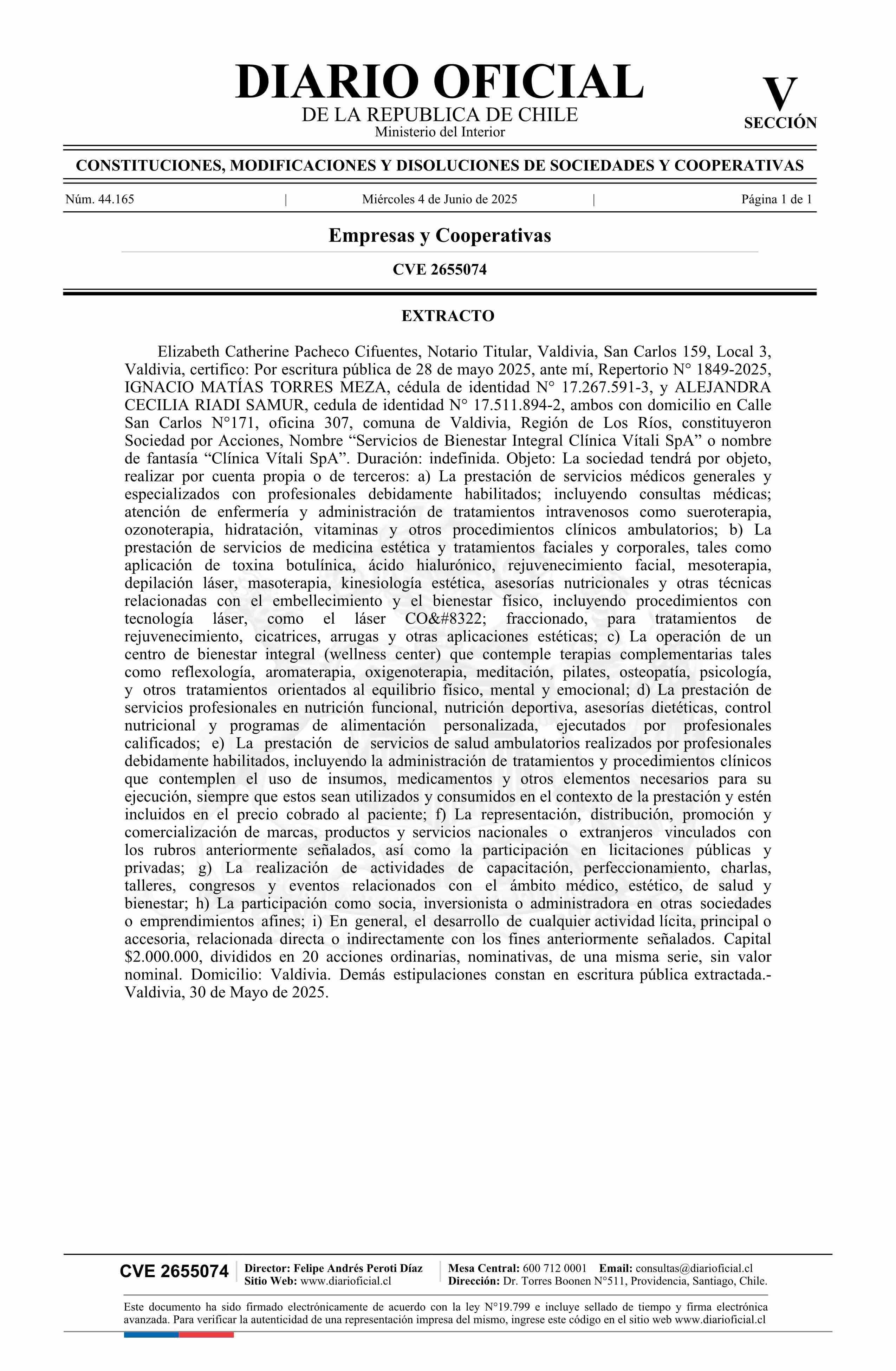 Título: Servicios de Bienestar Integral Clínica Vítali SpA