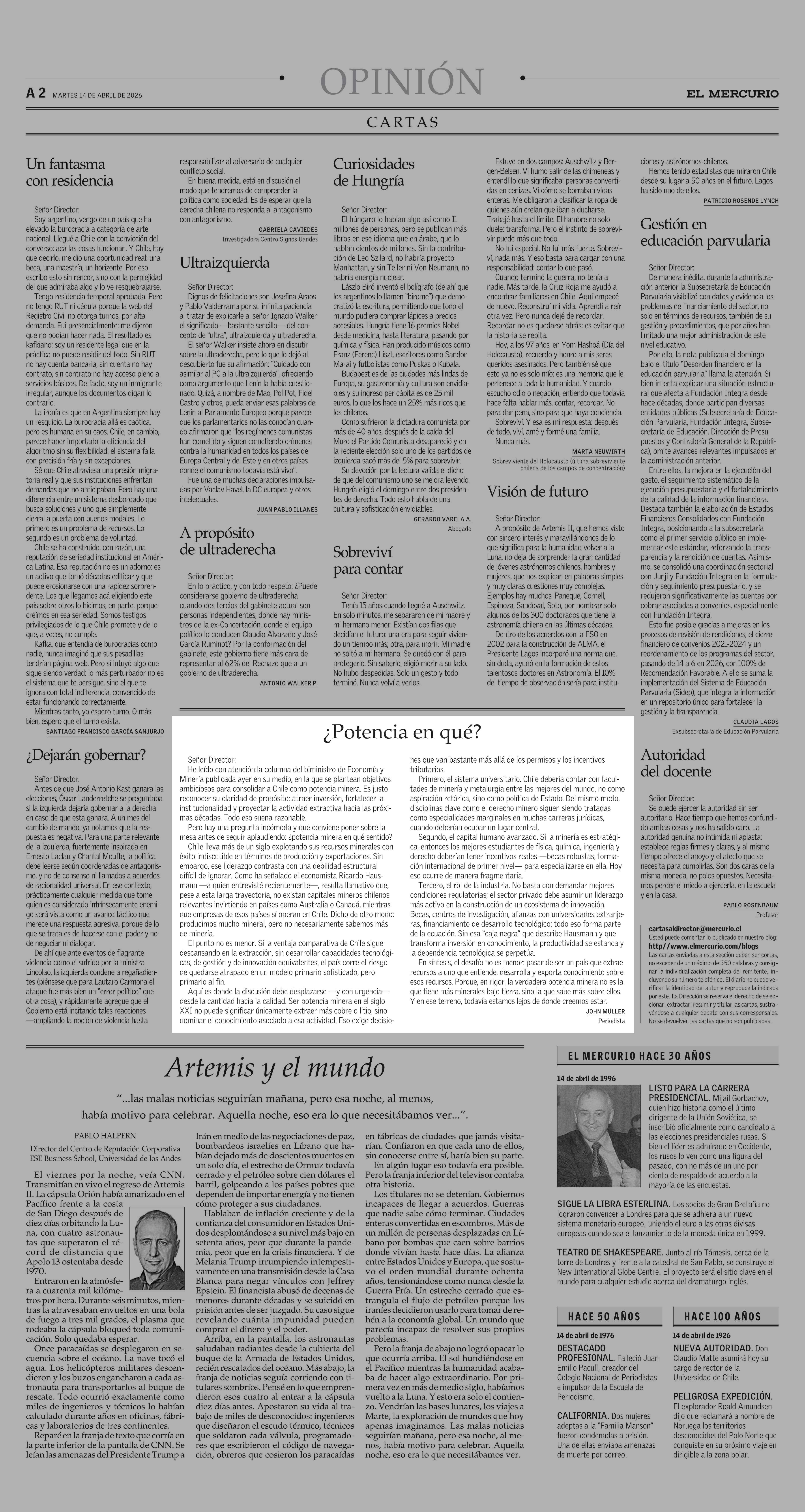 Fuente: El Mercurio (El Mercurio - Cuerpo A) Página(s): 2