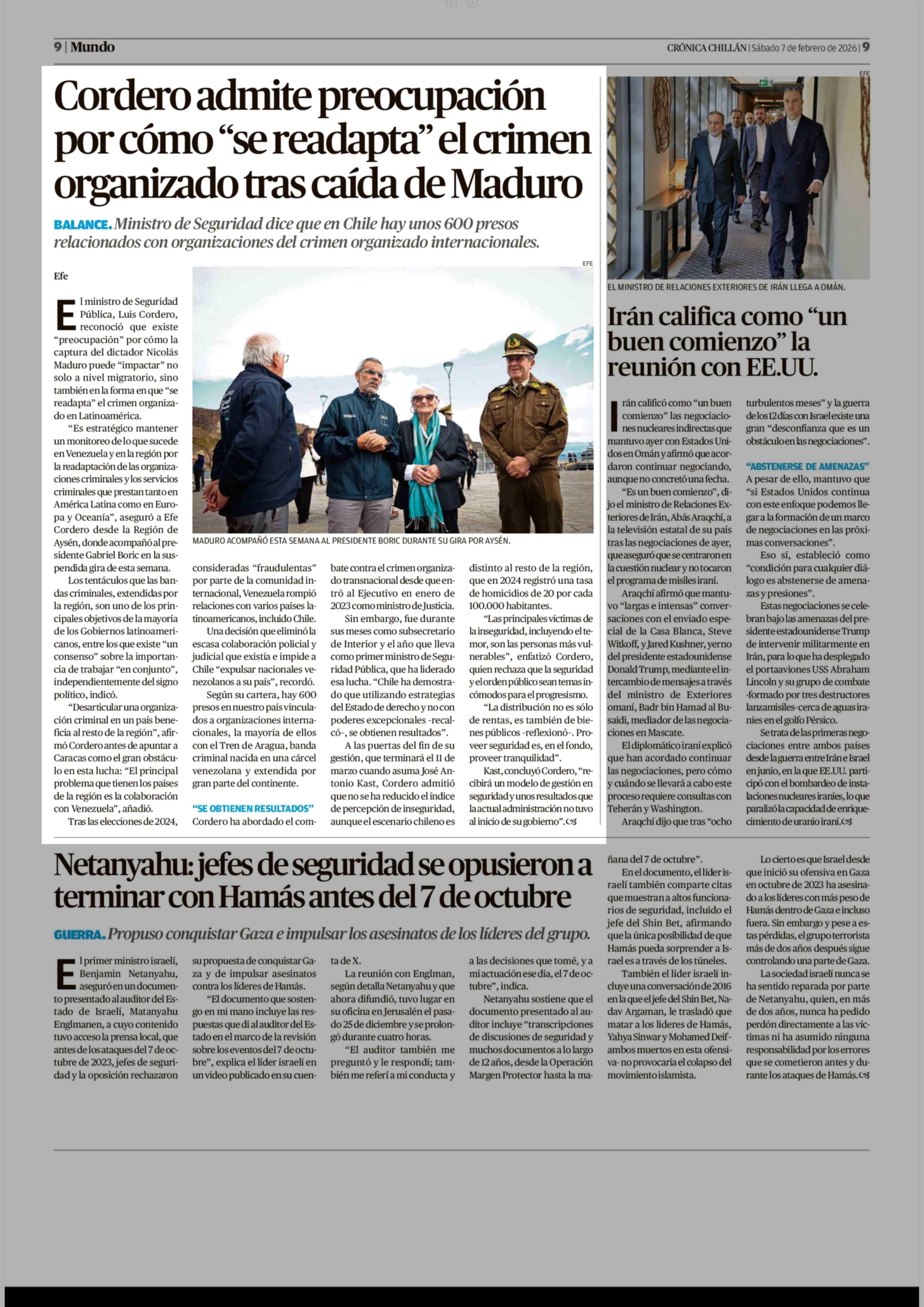 Cordero admite preocupación por cómo "se readapta" el crimen organizado tras caída de Maduro 07-02-2026 Crónica de Chillán |