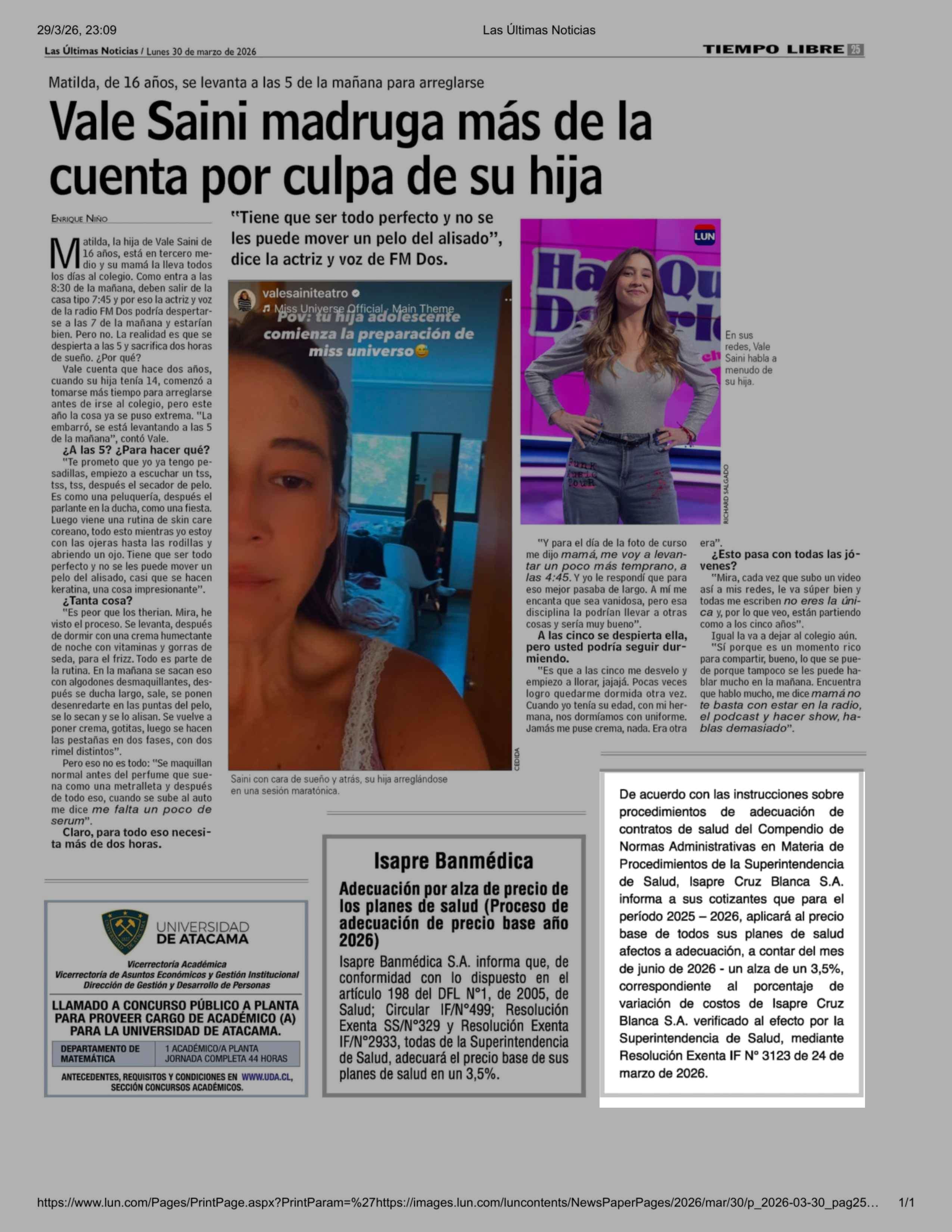 Título: EXTRACTOS: Isapre Cruz Blanca S.A. informa a sus cotizantes que para el período 2025 — 2026, aplicará al precio base de todos sus planes de salud afectos a adecuación, a contar del mes de junio de 2026 - un alza de un 3,5%,