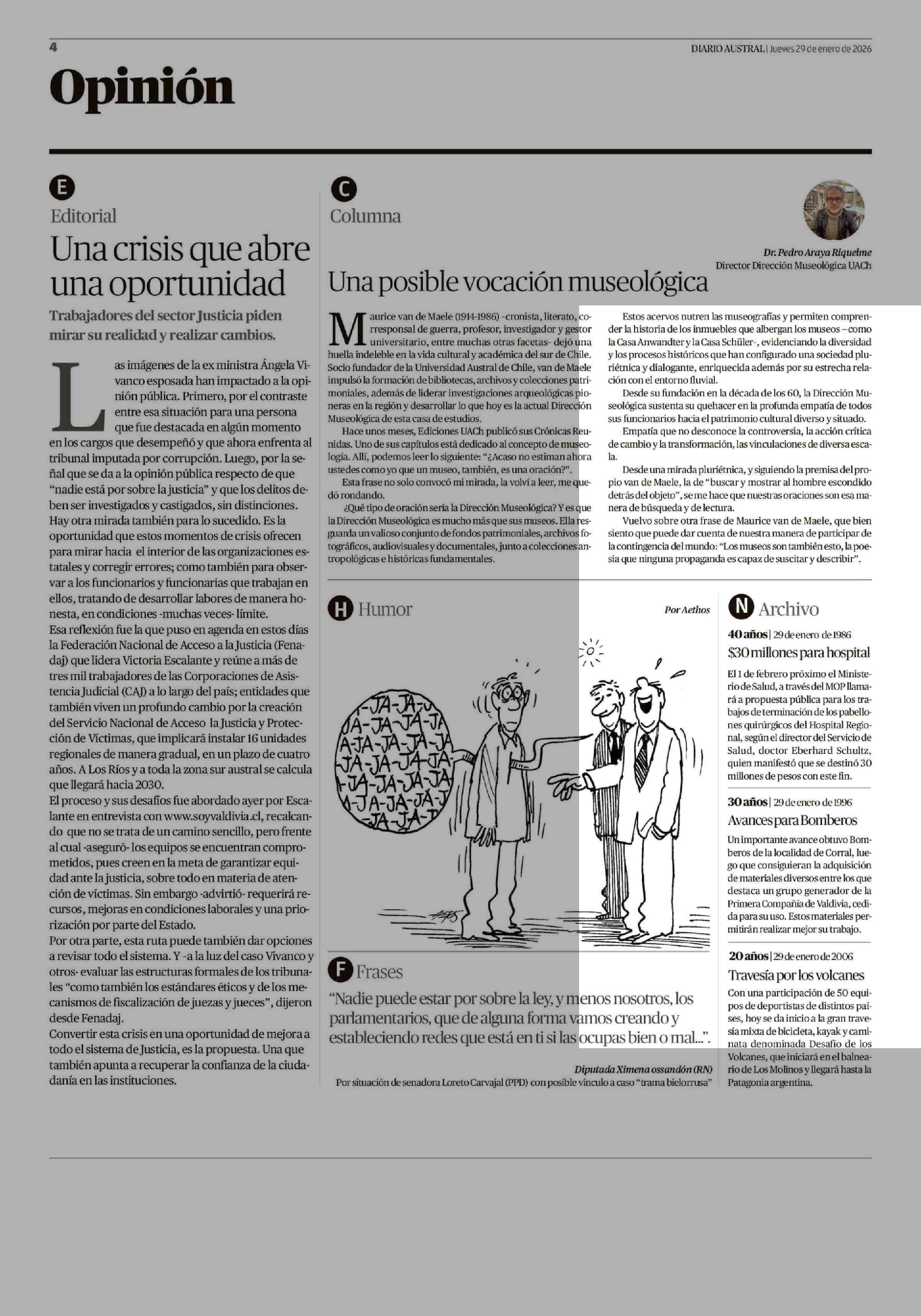 Columnas de Opinión: Una posible vocación museológica 29-01-2026 Diario Austral Región de Los Ríos |