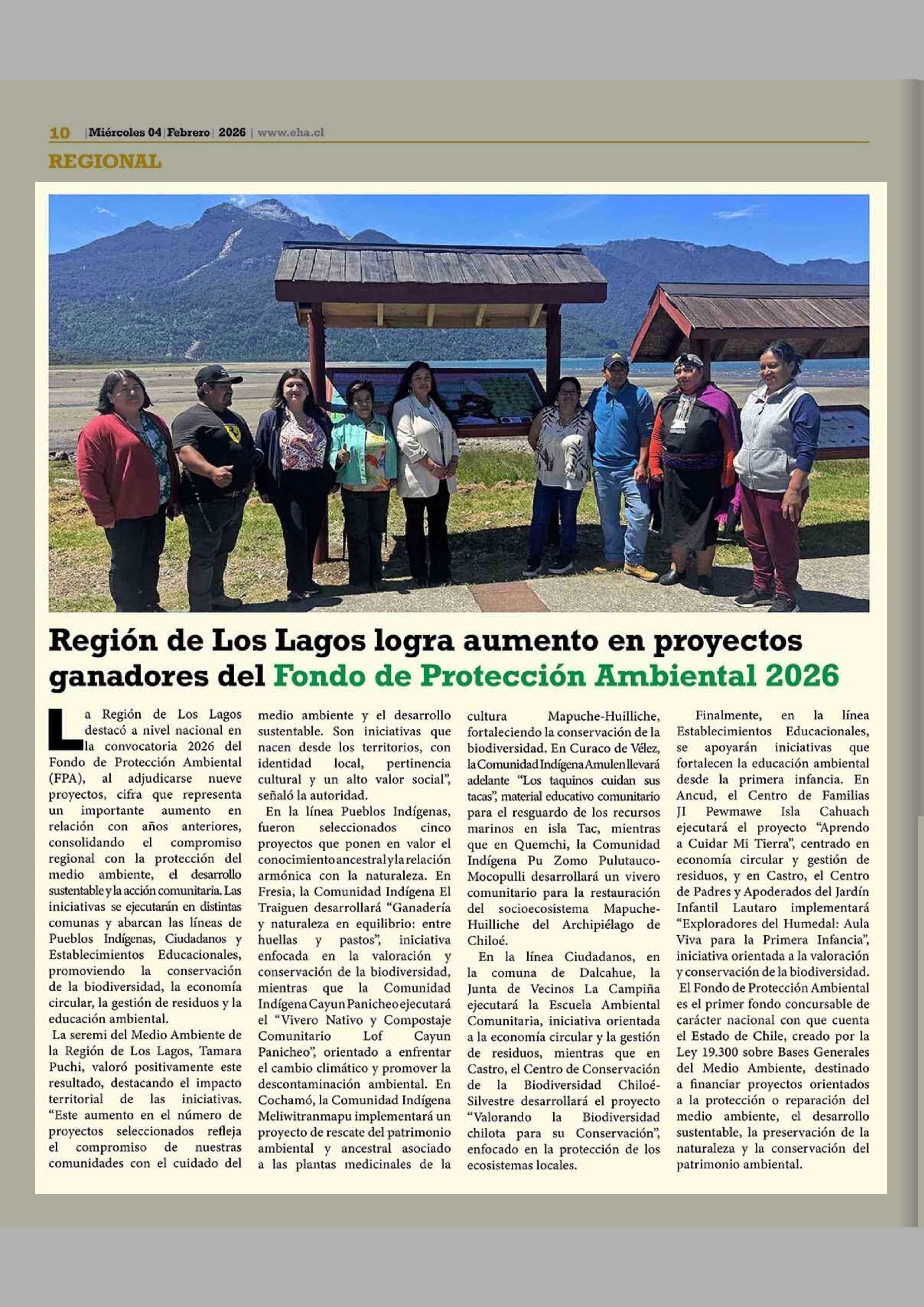 Título: Región de Los Lagos logra aumento en proyectos ganadores del Fondo de Protección Ambiental 2026