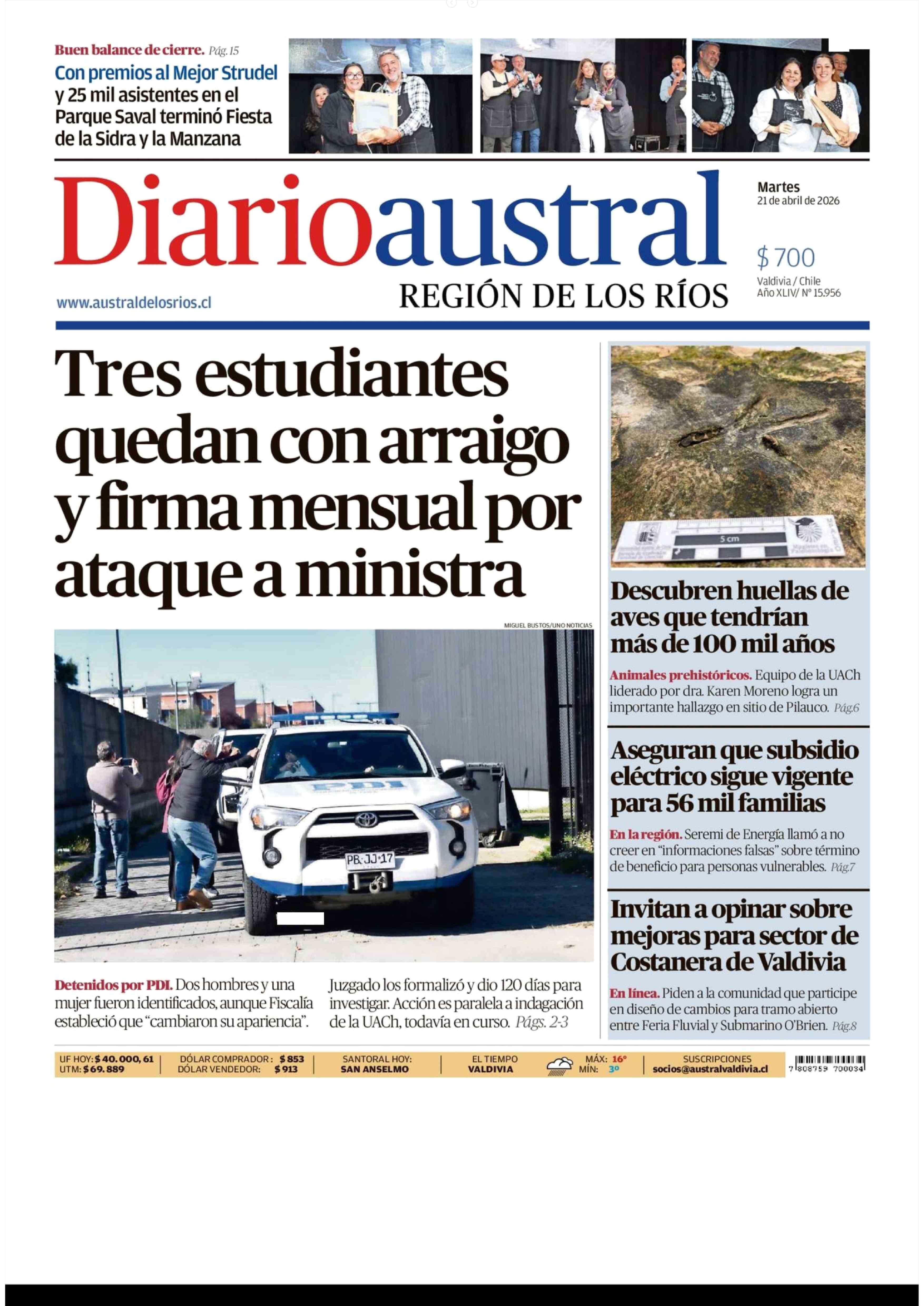 Fecha: 21-04-2026 Sector: Portada Región: Región de Los Ríos
