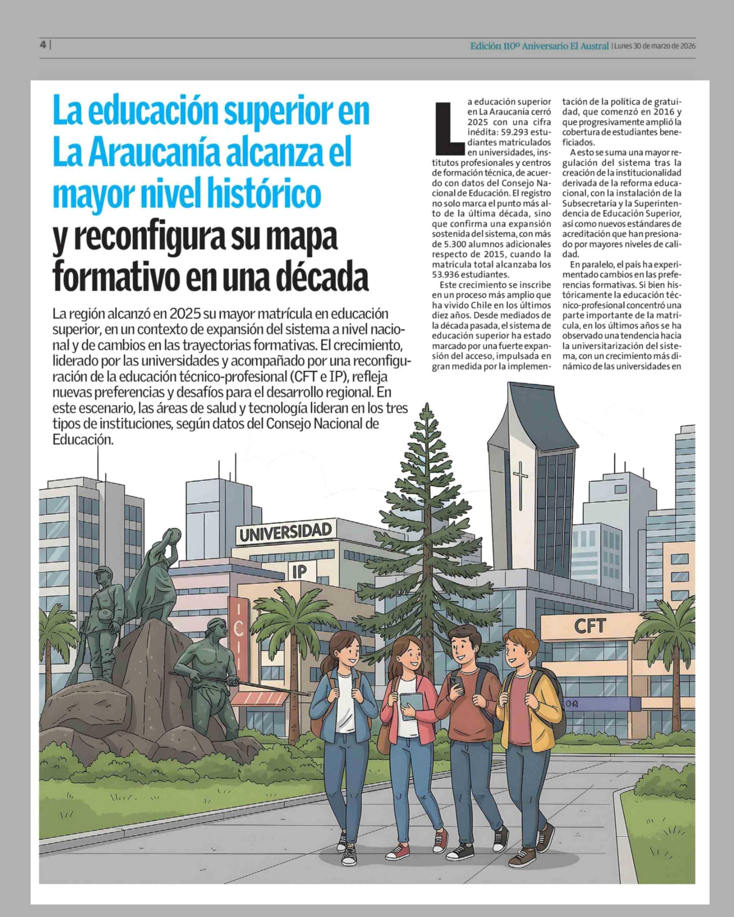 Título: La educación superior en La Araucanía alcanza el mayor nivel histórico y reconfigura su mapa formativo en una década