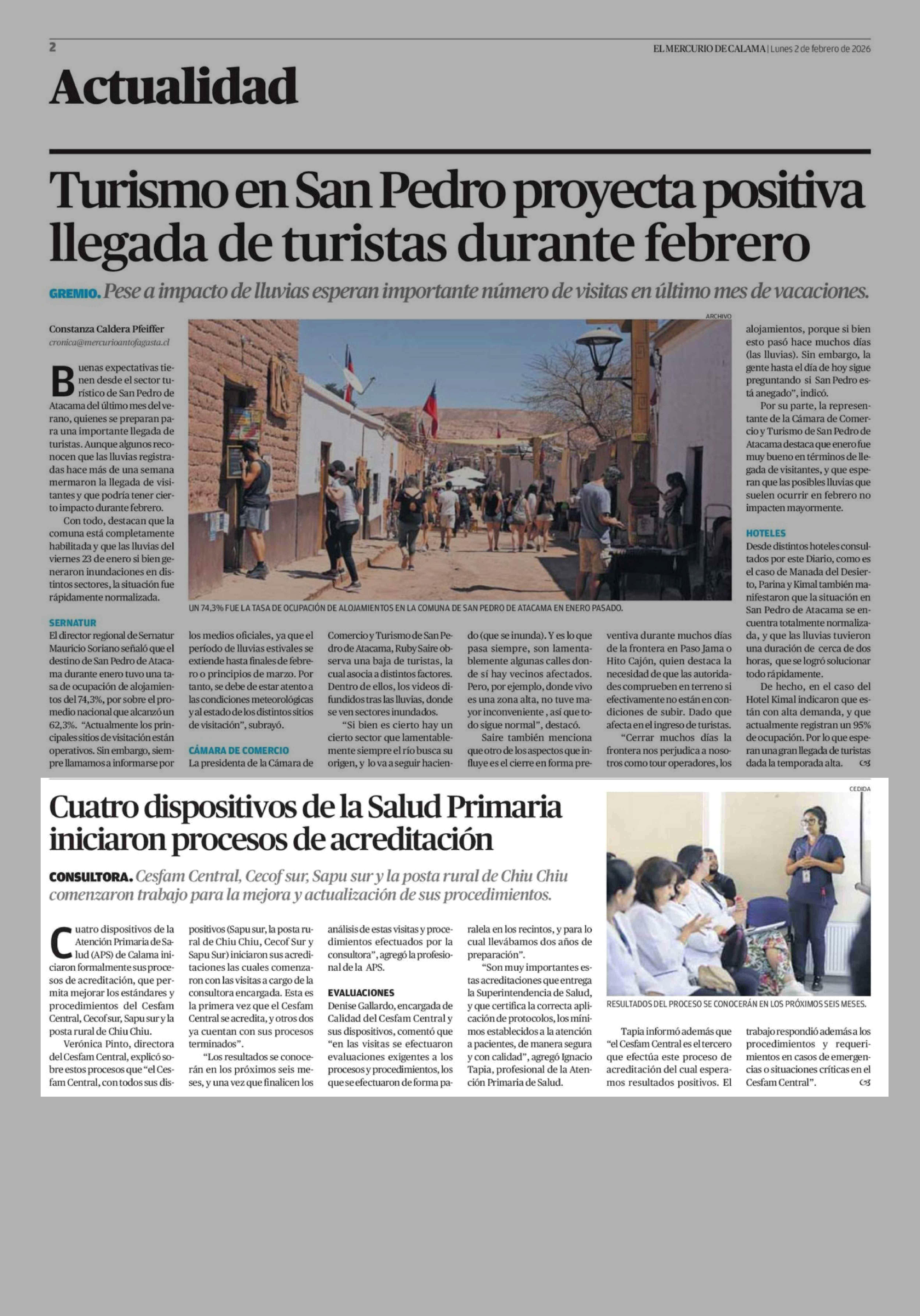 Cuatro dispositivos de la Salud Primaria iniciaron procesos de acreditación 02-02-2026 El Mercurio de Calama |