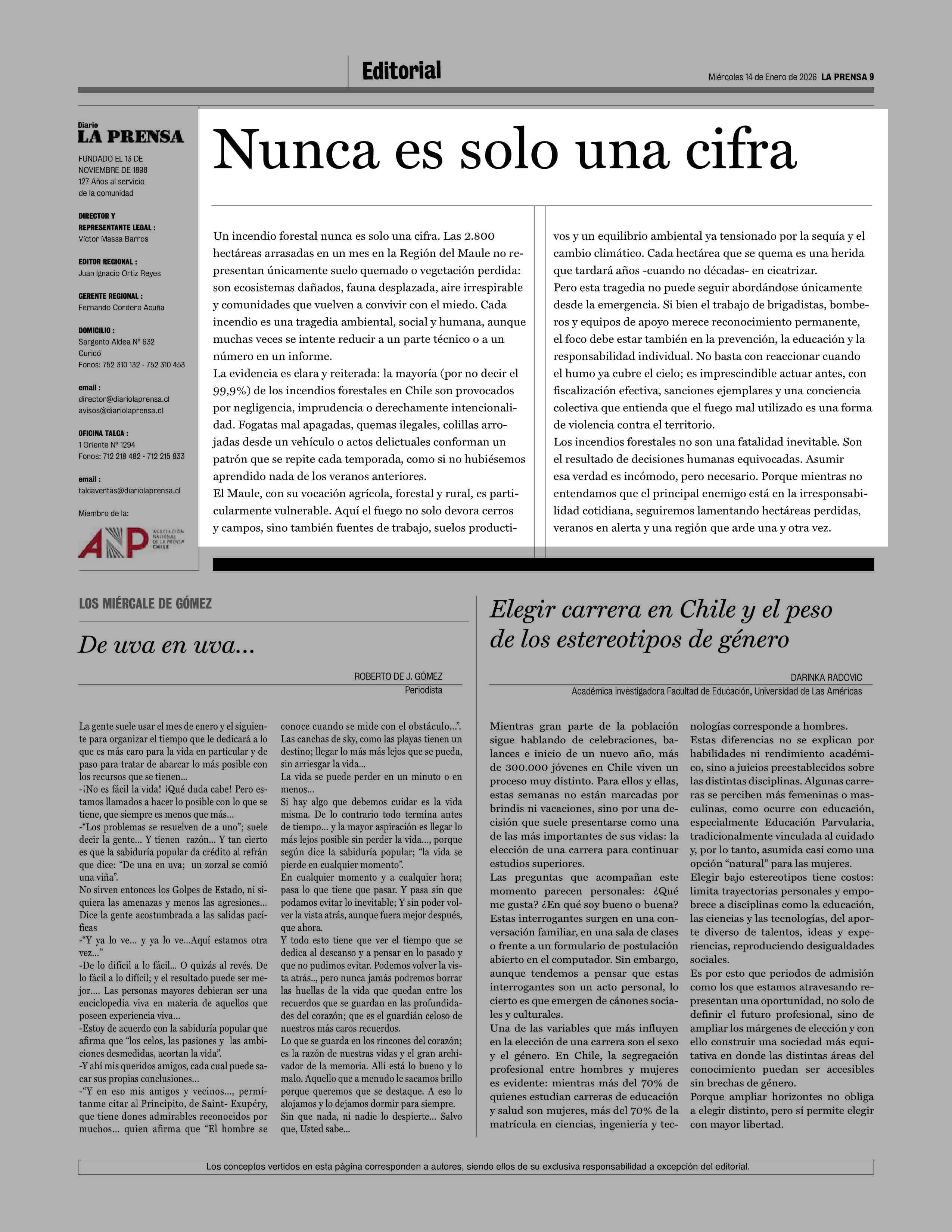 Fecha: 14-01-2026 Sector: Editorial Región: Región del Maule
