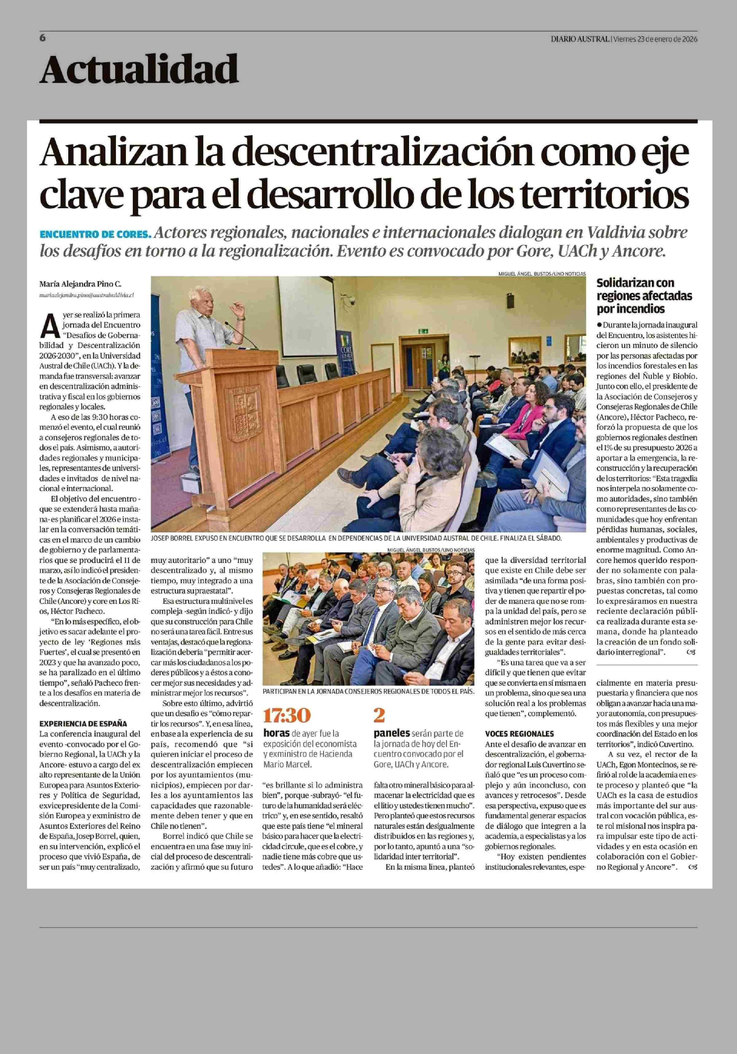 Analizan la descentralización como eje clave para el desarrollo de los territorios 23-01-2026 Diario Austral Región de Los Ríos |