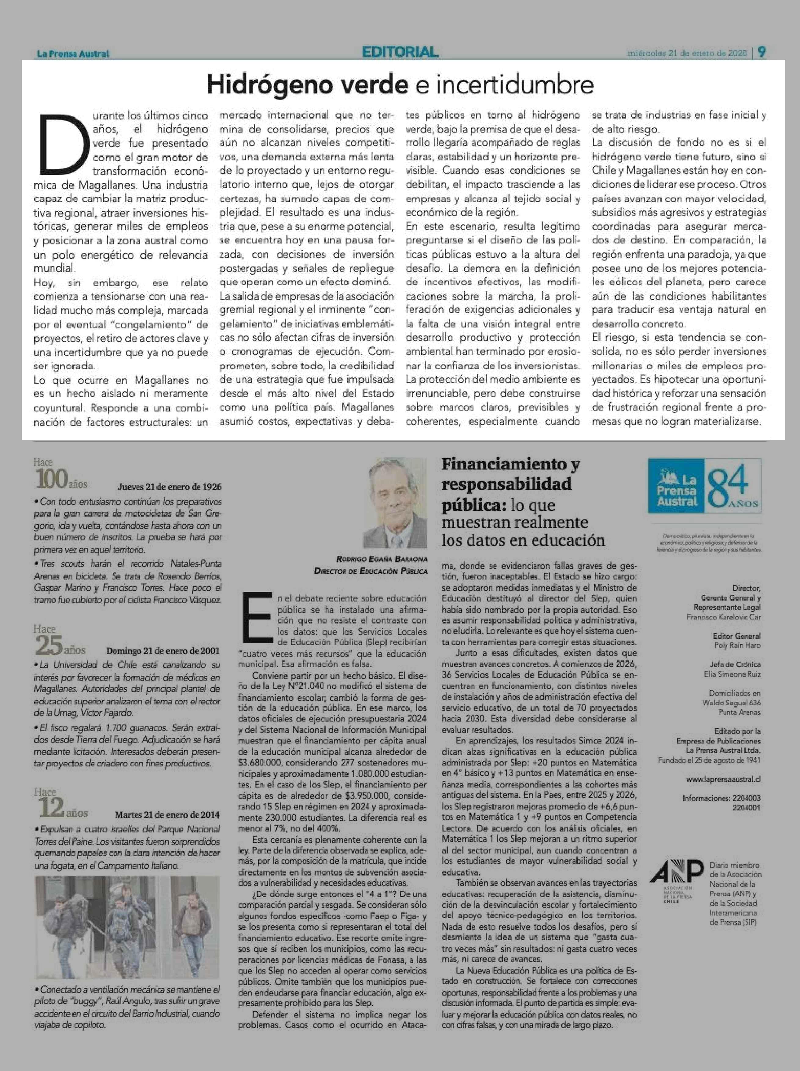 Fecha: 21-01-2026 Sector: Editorial Región: Región de Magallanes y de la Antártica Chilena