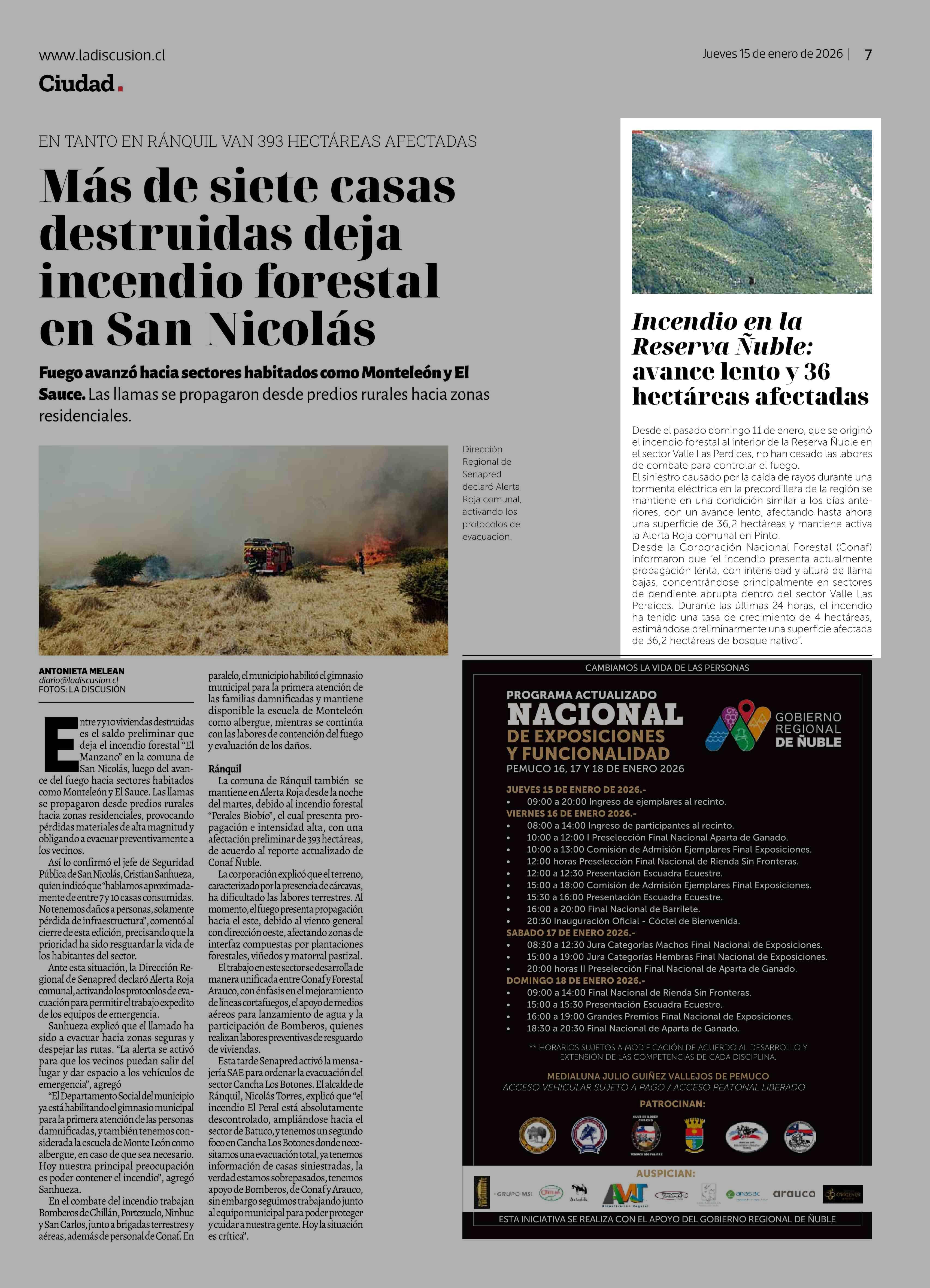 | Fecha: | 15-01-2026 | Sector: | Noticia general | Región: | Región del Ñuble |