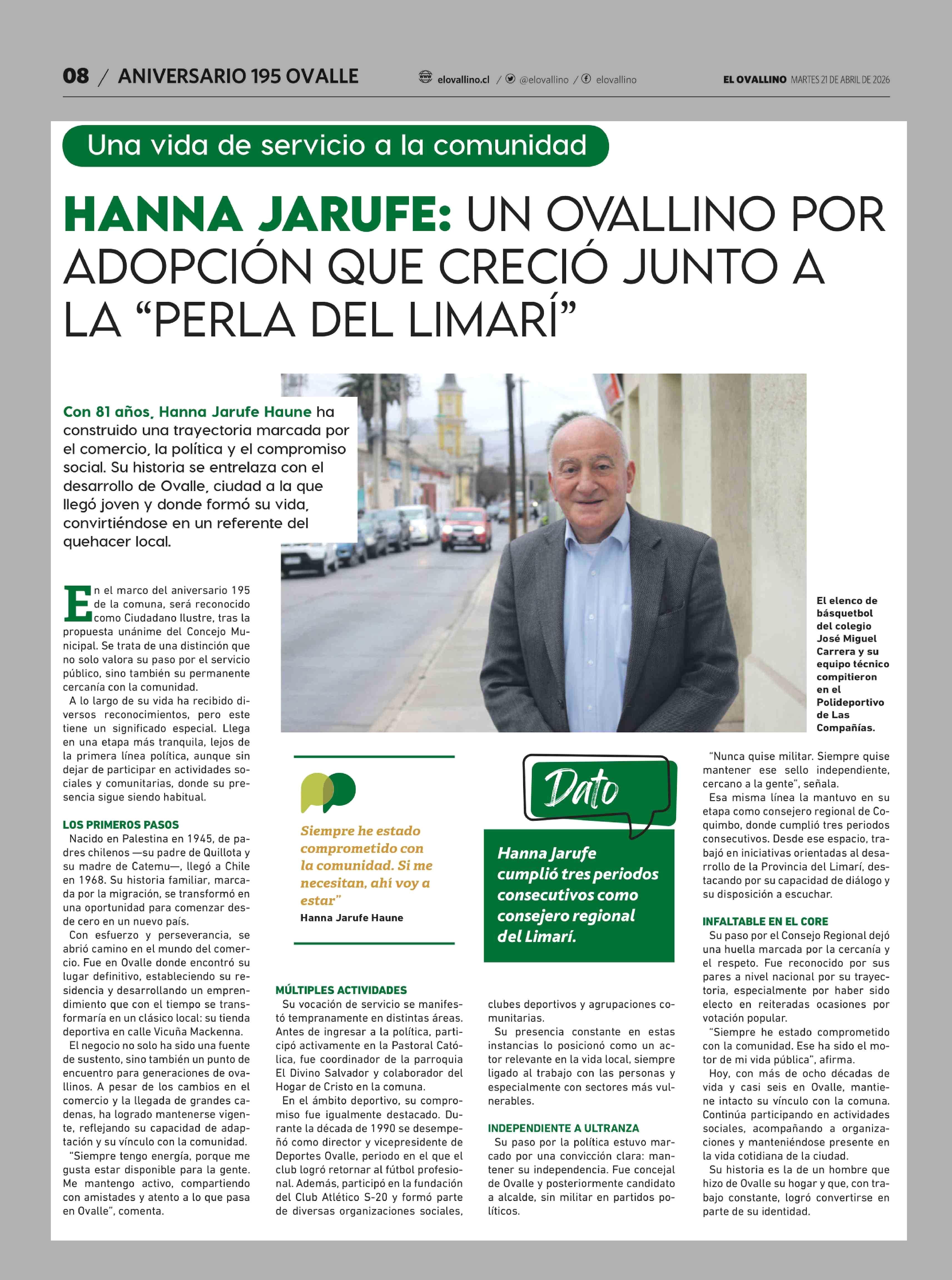 HANNA JARUFE: UN OVALLINO POR ADOPCIÓN QUE CRECIÓ JUNTO ALA "PERLA DEL LIMARÍ" 21-04-2026 El Ovallino |