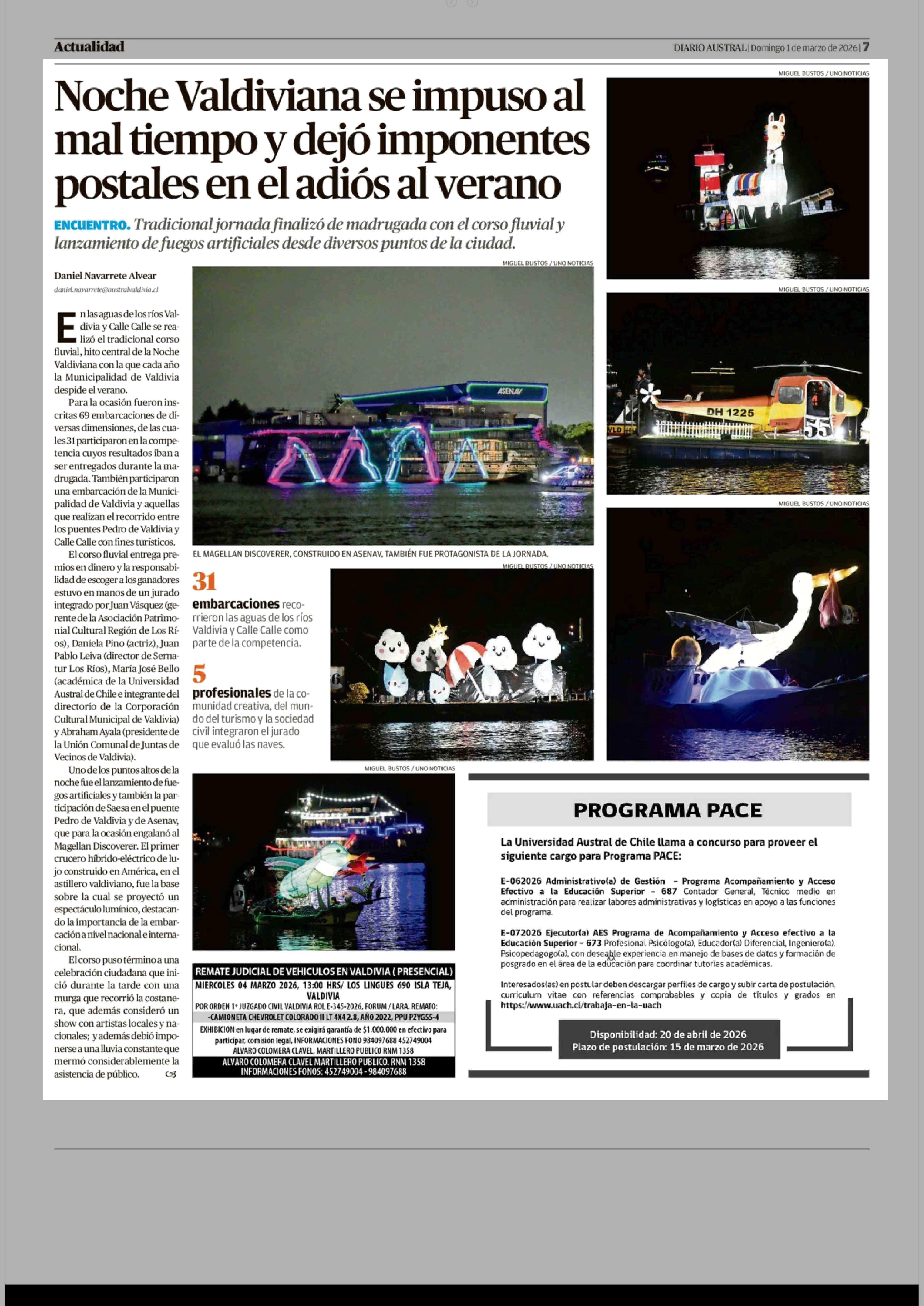 Noche Valdiviana se impuso al mal tiempo y dejó imponentes postales en el adiós al verano 01-03-2026 Diario Austral Región de Los Ríos |