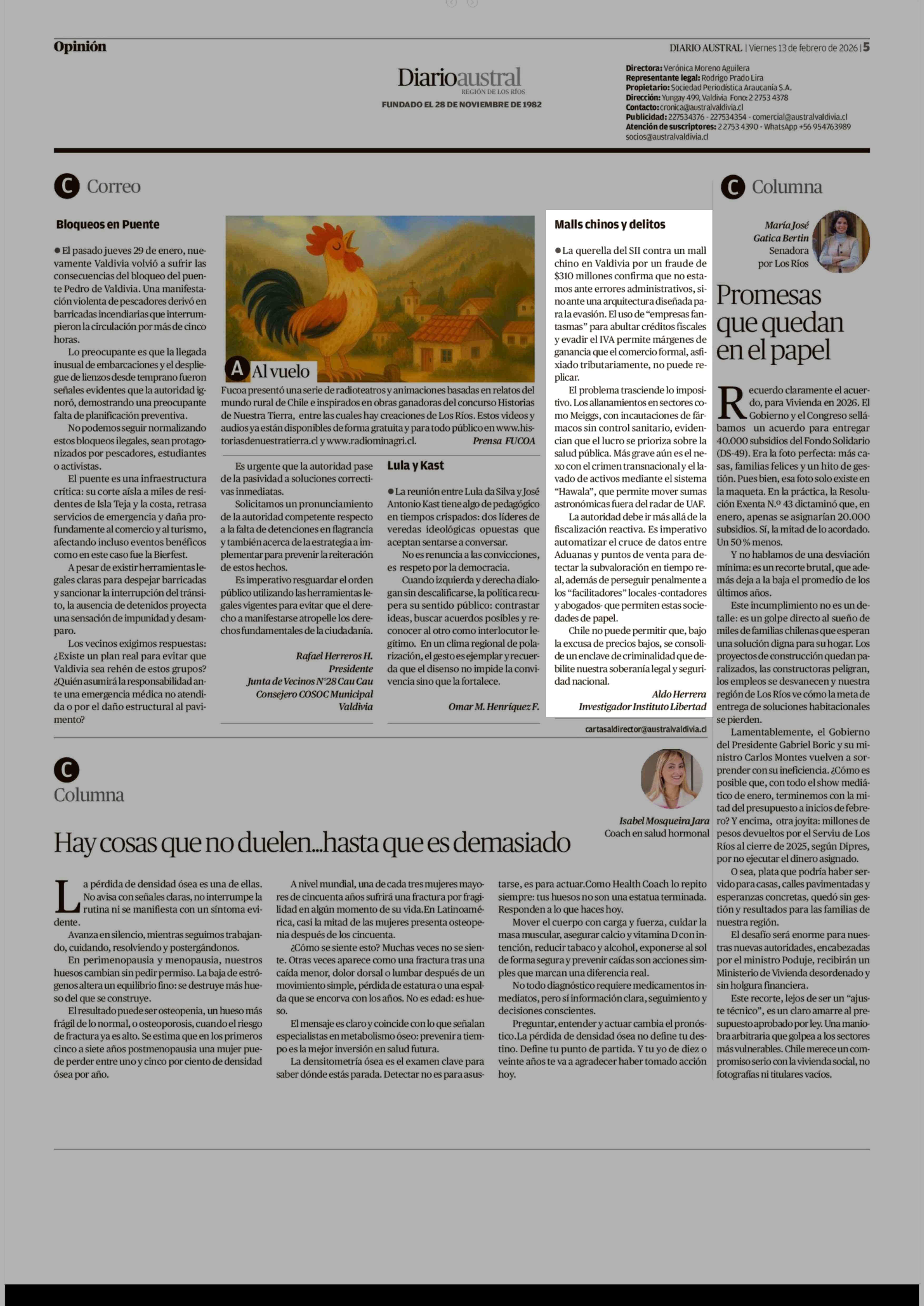 CARTAS: Malls chinos y delitos 13-02-2026 Diario Austral Región de Los Ríos |