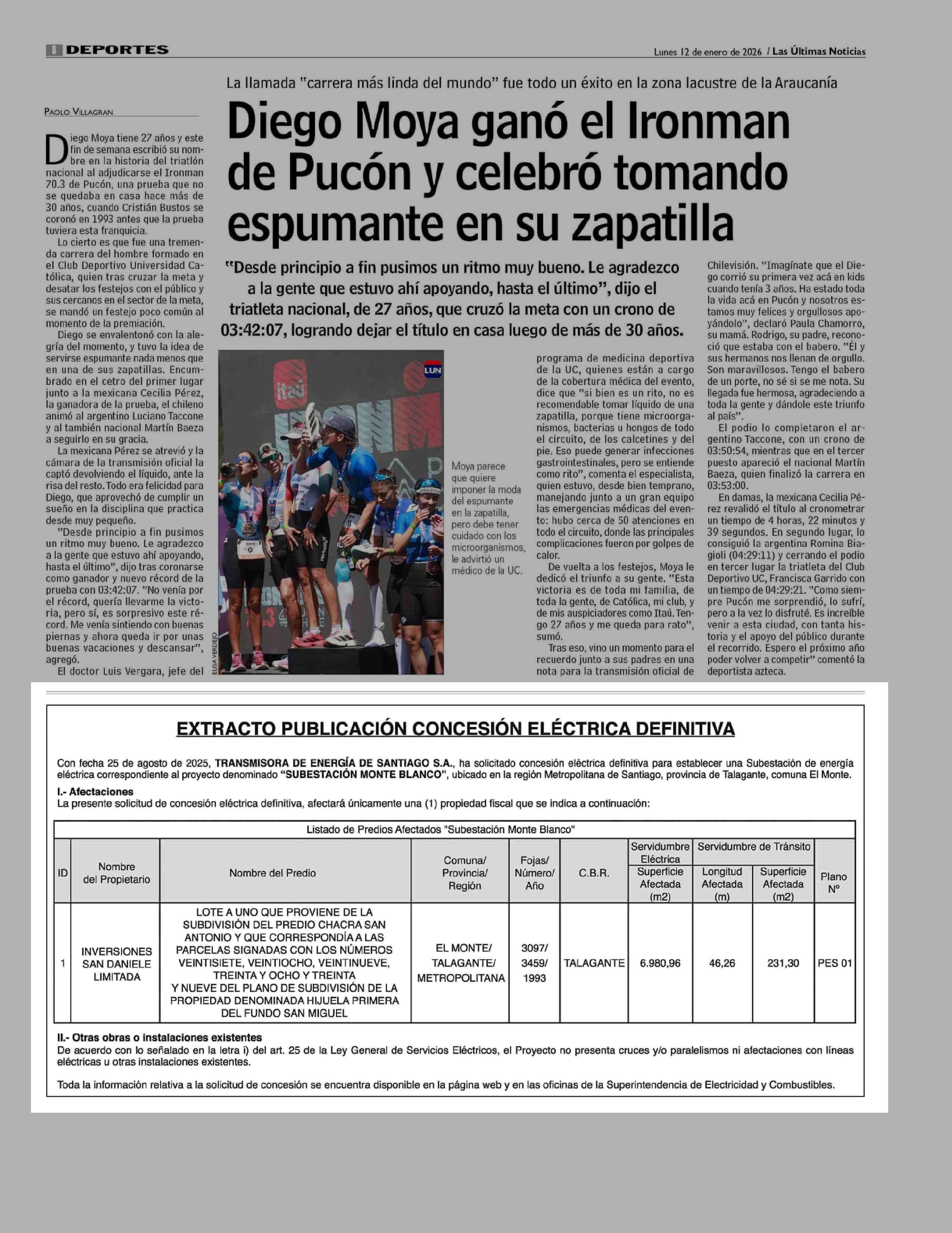 Fecha: 12-01-2026 Sector: Extractos Región: Región Metropolitana de Santiago