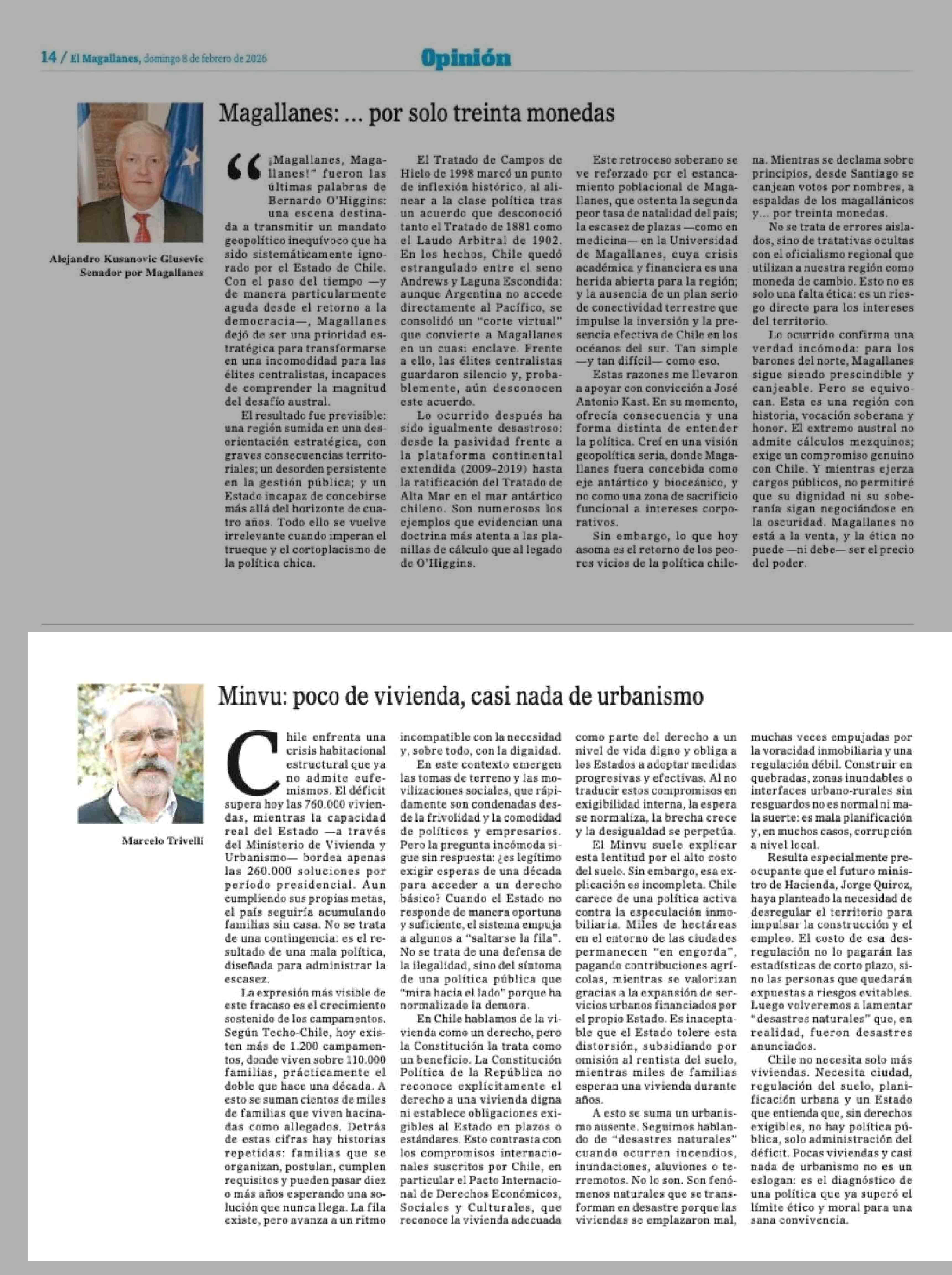 | Fecha: | 08-02-2026 | Sector: | Columnas de Opinión | Región: | Región de Magallanes y de la Antártica Chilena |