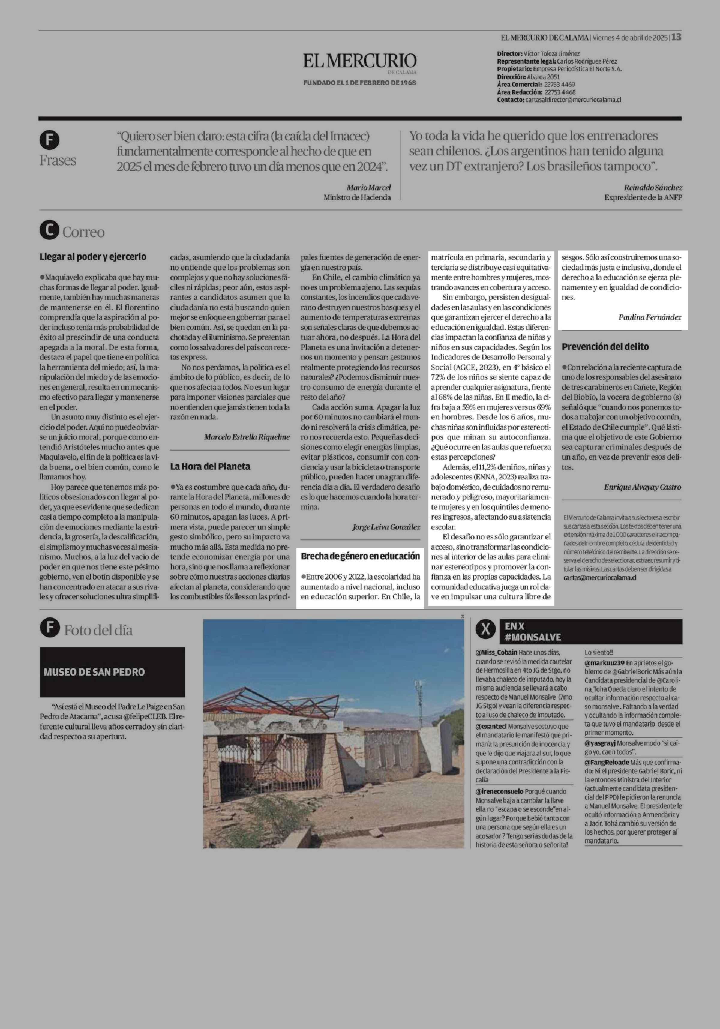 Brecha de género en educación 04-04-2025 El Mercurio de Calama |