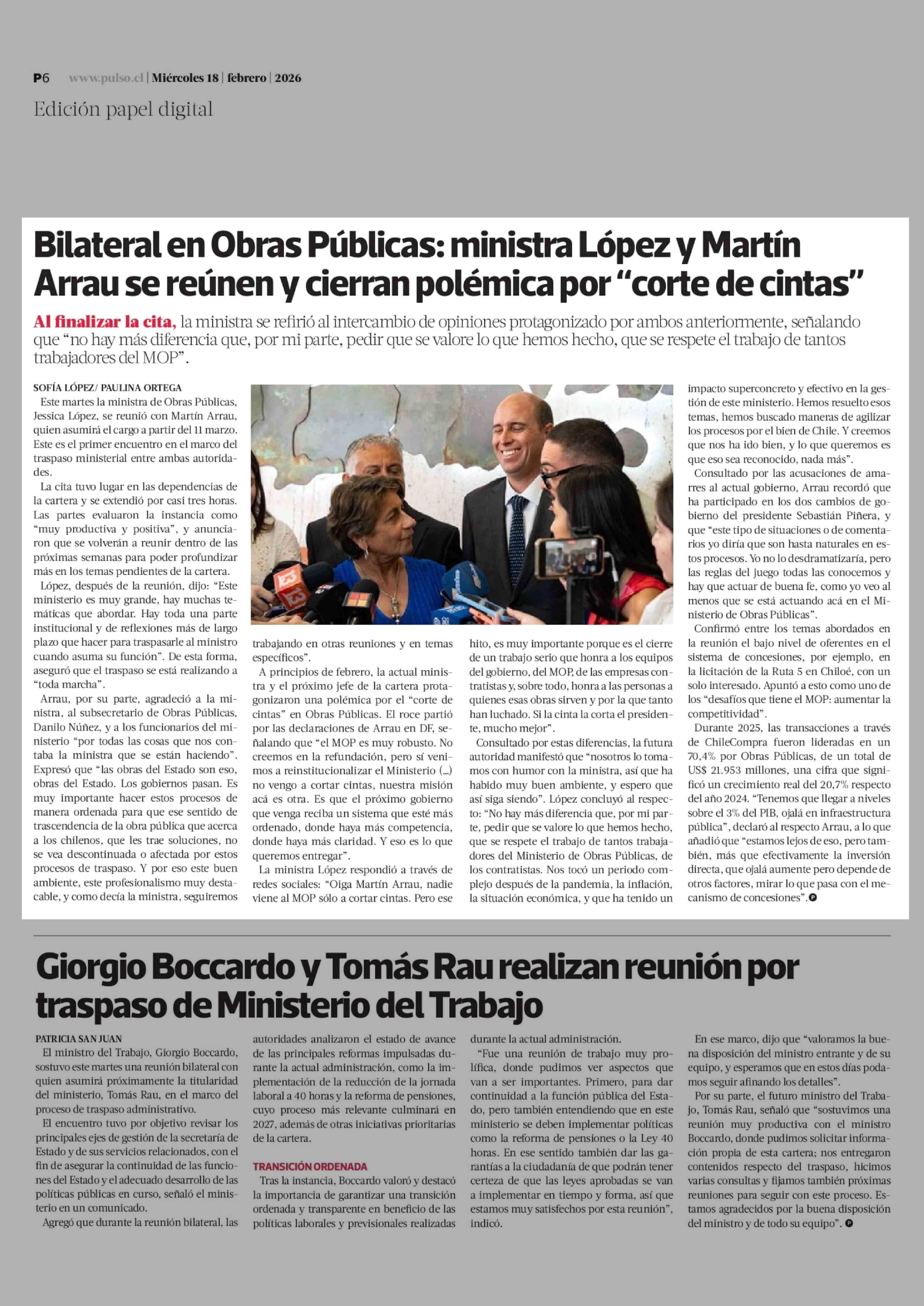 Título: Bilateral en Obras Públicas: ministra López y Martín Arrau se reúnen y cierran polémica por "corte de cintas"