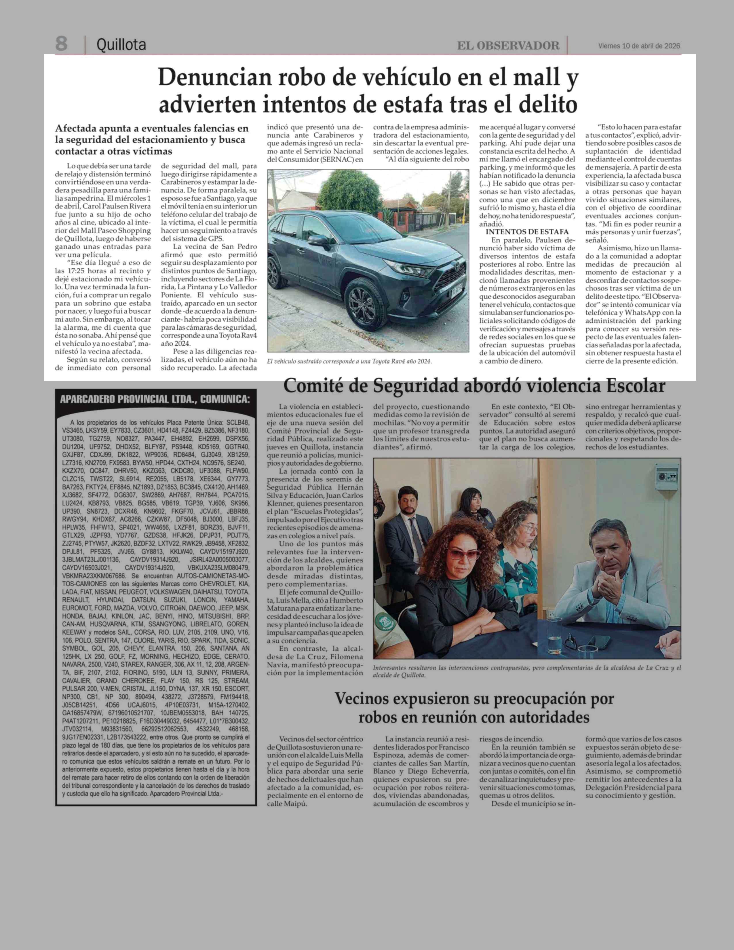Denuncian robo de vehículo en el mall y advierten intentos de estafa tras el delito 10-04-2026 El Observador |