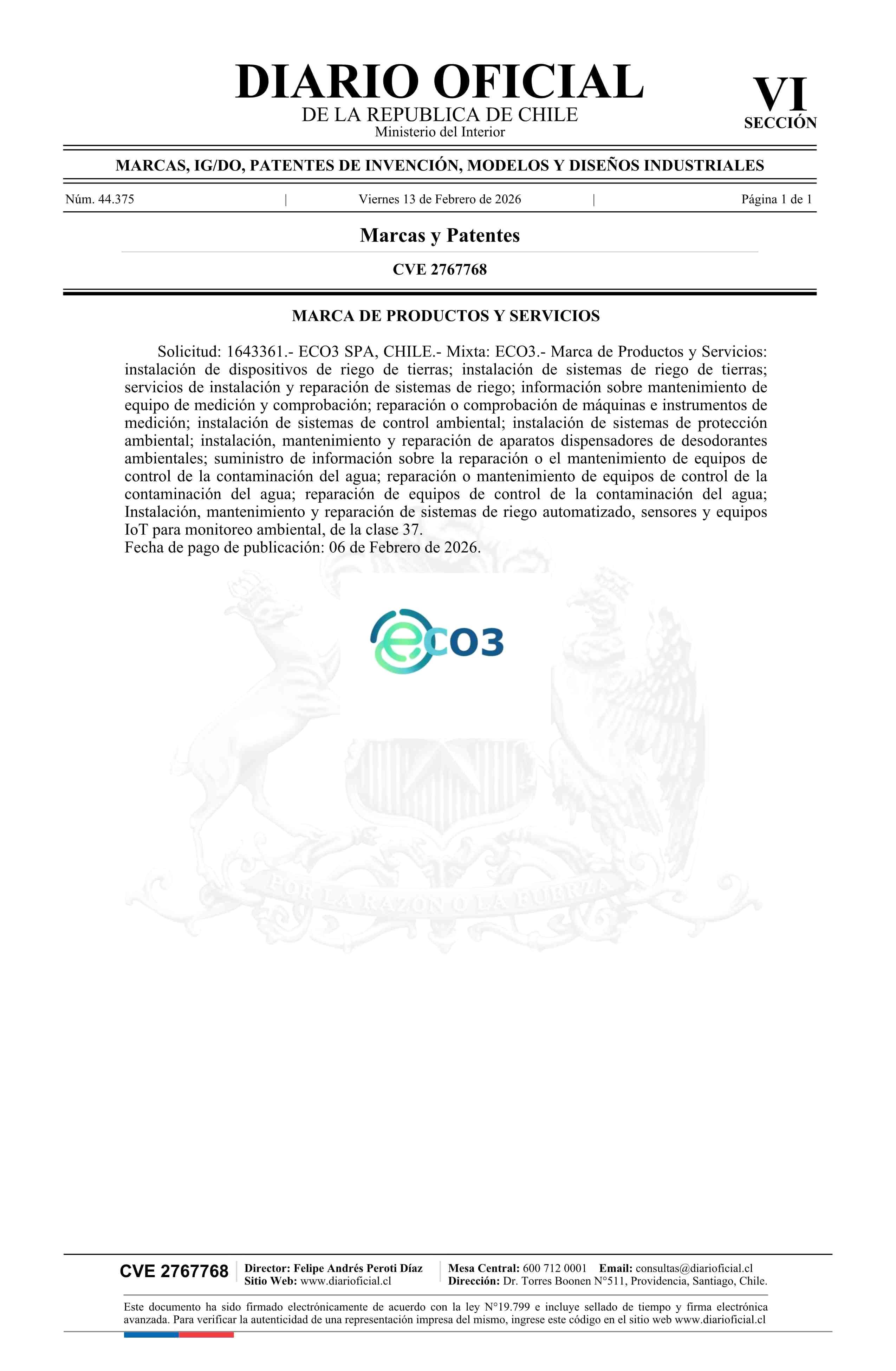 Solicitud número 1643361.- ECO3 13-02-2026 Diario Oficial Edición Electrónica |