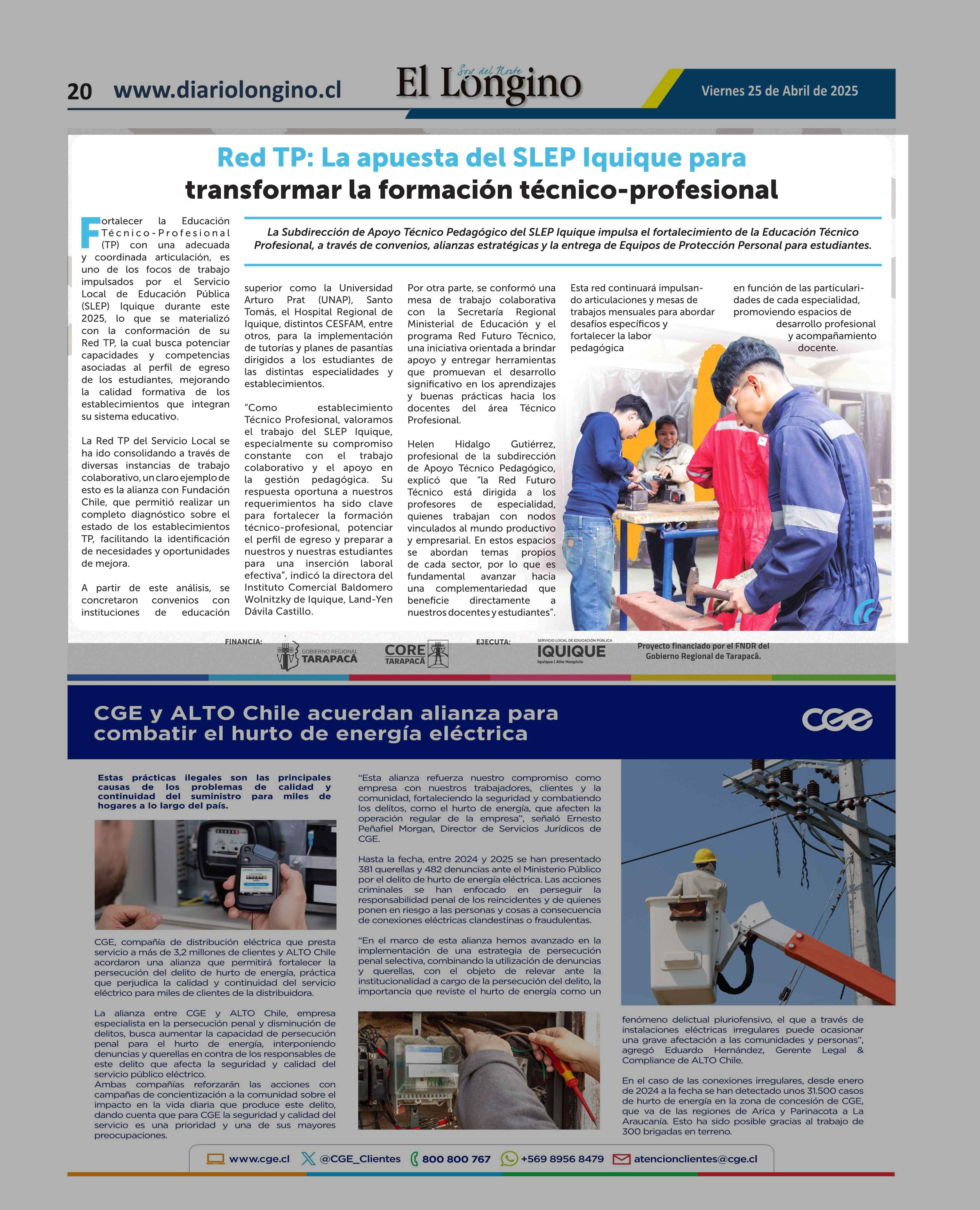 | Fecha: | 25-04-2025 | Sector: | Noticia general | Región: | Región de Tarapacá |